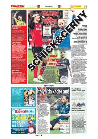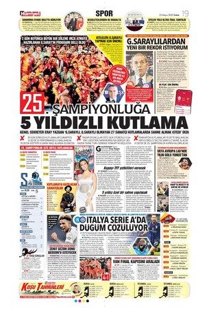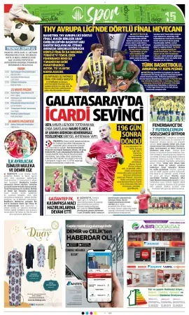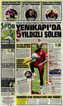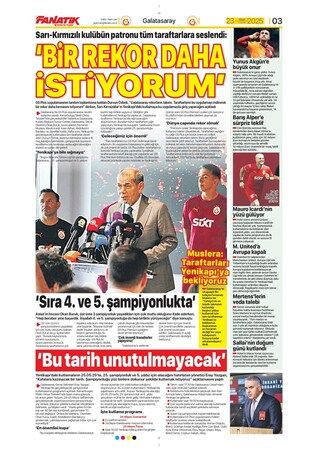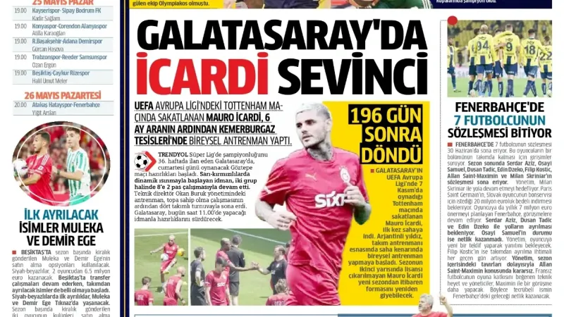 Günün spor manşetlerinde, spor gündemiyle alakalı en yeni gelişmeler yerlerini aldı. 23 Mayıs 2025 tarihli gazetelerin spor sayfalarına, Beşiktaş, Fenerbahçe, Galatasaray ve Trabzonspor'a dair haberlere, bir çırpıda göz atın. İşte 23 Mayıs 2025 gazete manşetlerinde spor haberleri.