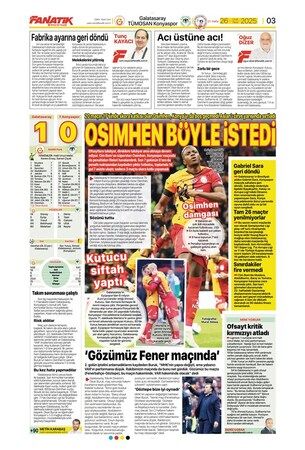 Günün spor manşetlerinde, spor gündemiyle alakalı en yeni gelişmeler ve transfer haberleri belli oldu. 26 Ocak 2025 tarihli gazetelerin spor sayfalarına, Beşiktaş, Fenerbahçe, Galatasaray ve Trabzonspor'un transfer haberlerine, 1 dakikada göz atın.