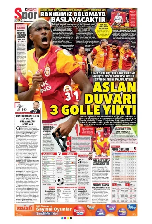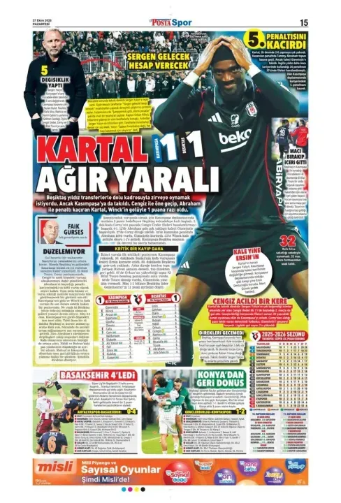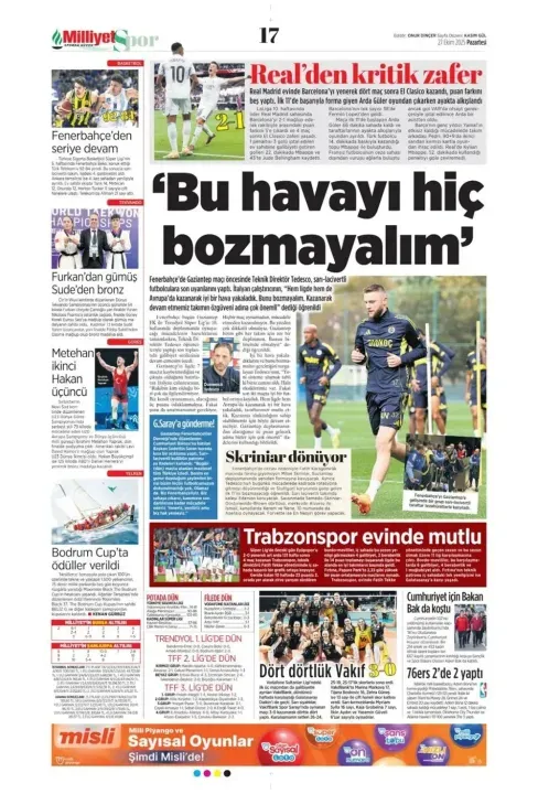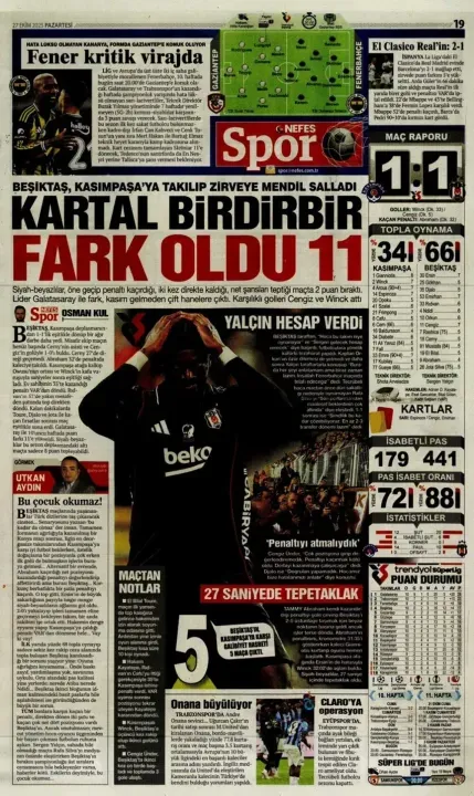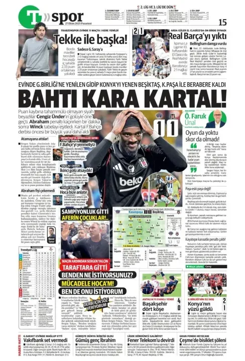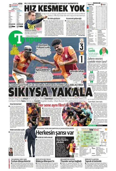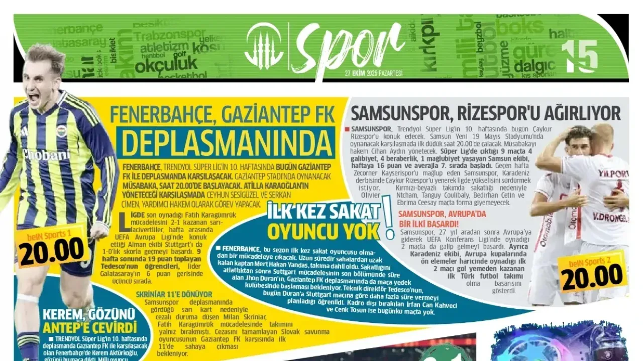 Günün spor manşetlerinde, spor gündemiyle alakalı en yeni gelişmeler yerlerini aldı. 27 Ekim 2025 tarihli gazetelerin spor sayfalarına, Beşiktaş, Fenerbahçe, Galatasaray ve Trabzonspor'a dair haberlere, bir çırpıda göz atın. İşte 27 Ekim 2025 gazete manşetlerinde spor haberleri.