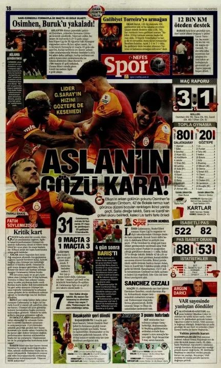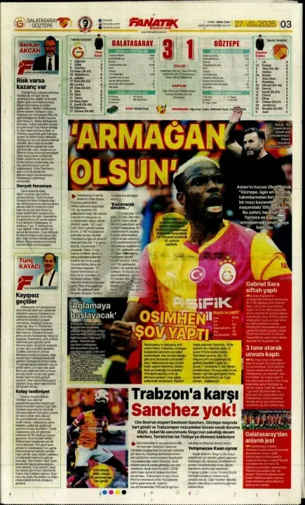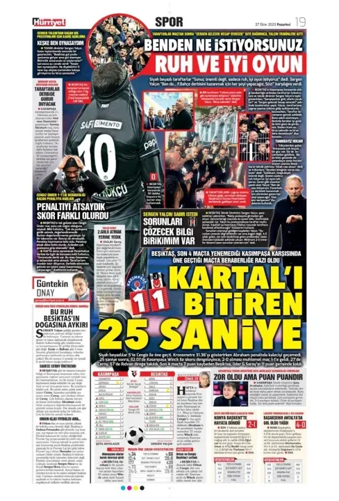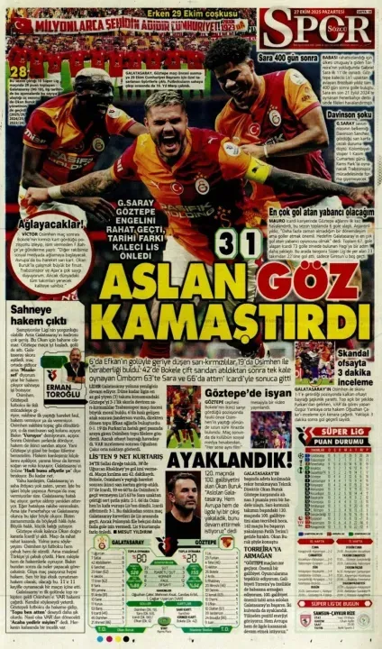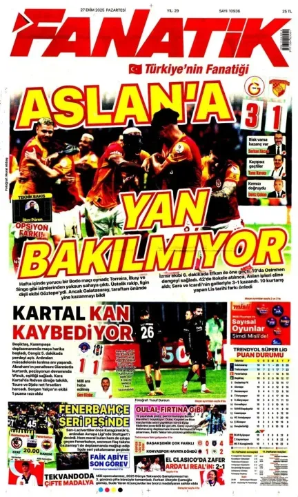 Spor haberleri: 27 Ekim 2025 gazetelerde futbol manşetleri