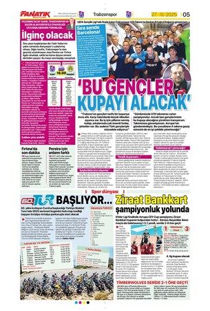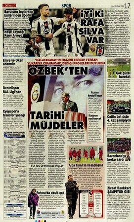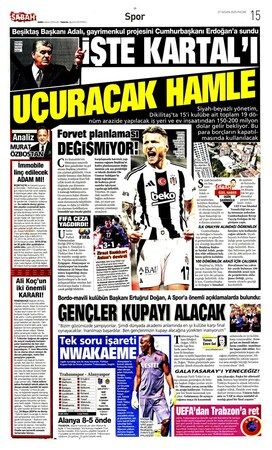 Günün spor manşetlerinde, spor gündemiyle alakalı en yeni gelişmeler yerlerini aldı. 27 Nisan 2025 tarihli gazetelerin spor sayfalarına, Beşiktaş, Fenerbahçe, Galatasaray ve Trabzonspor'a dair haberlere, bir çırpıda göz atın. İşte 27 Nisan 2025 gazete manşetlerinde spor haberleri.