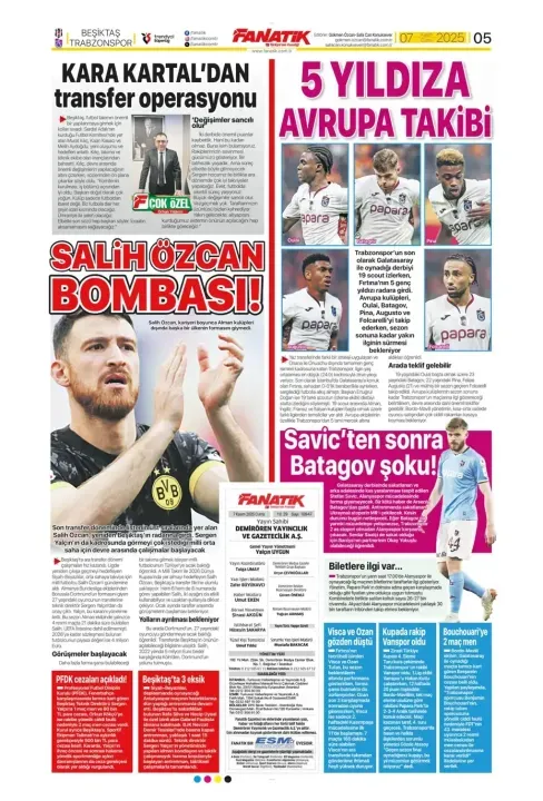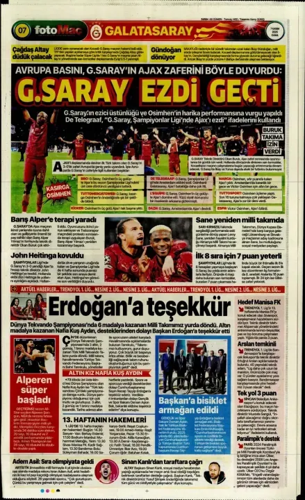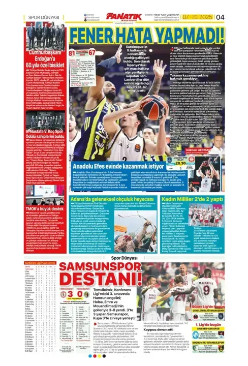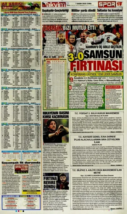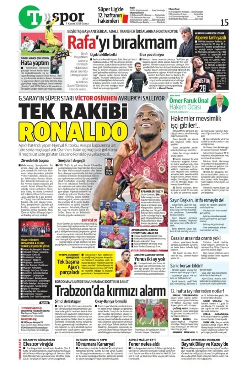 Günün spor manşetlerinde, spor gündemiyle alakalı en yeni gelişmeler yerlerini aldı. 7 Kasım 2025 tarihli gazetelerin spor sayfalarına, Beşiktaş, Fenerbahçe, Galatasaray ve Trabzonspor'a dair haberlere, bir çırpıda göz atın. İşte 7 Kasım 2025 gazete manşetlerinde spor haberleri.