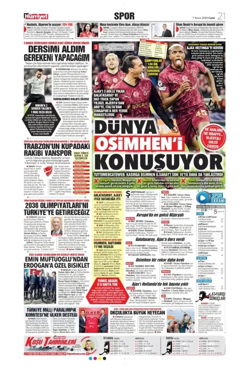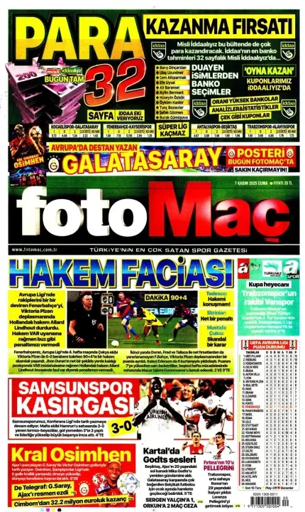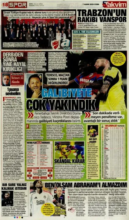 Spor haberleri: 7 Kasım 2025 gazetelerde futbol manşetleri