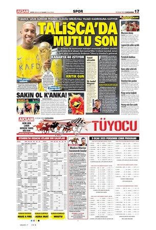 Spor haberleri: 8 Ocak 2025 gazete manşetleri