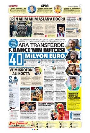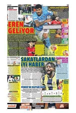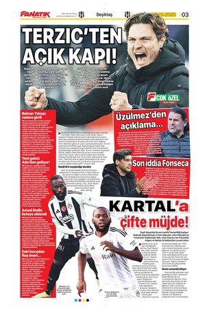 Günün spor manşetlerinde, spor gündemiyle alakalı en yeni gelişmeler ve transfer haberleri belli oldu. 8 Ocak 2025 tarihli gazetelerin spor sayfalarına, Beşiktaş, Fenerbahçe, Galatasaray ve Trabzonspor'a dair haberlere, 1 dakikada göz atın.