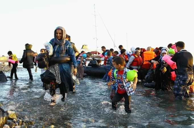 Sabahın erken saatlerinde Meriç Nehri kıyısına gelen Suriyeli bir aile yanlarındaki botla birlikte suya girdi.