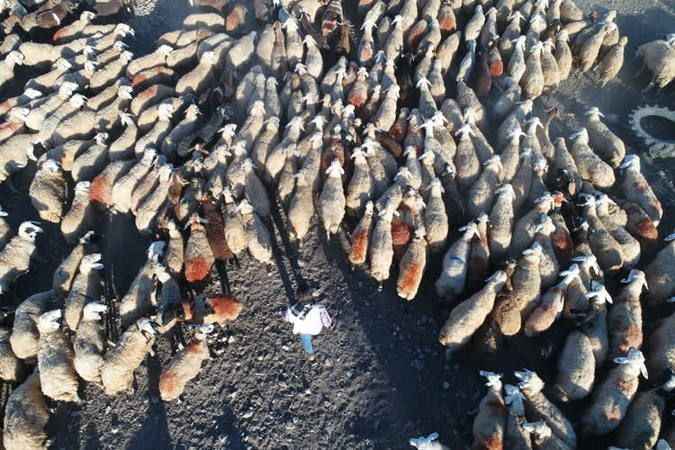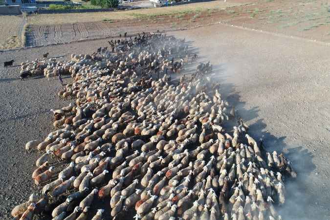 Küçükbaş hayvancılığın önemli merkezlerinden Şanlıurfa'da, gündüzleri koyunları merada otlatan çobanlar, gün batımına doğru süt sağımı için hayvanları eve getiriyor.