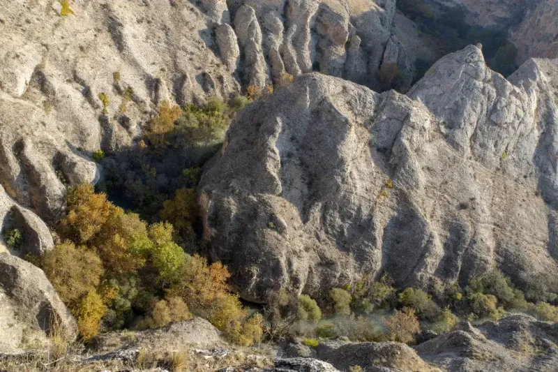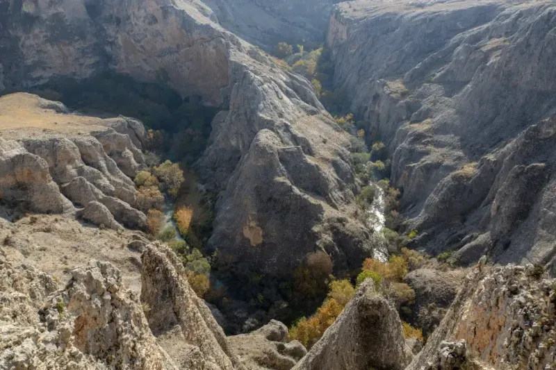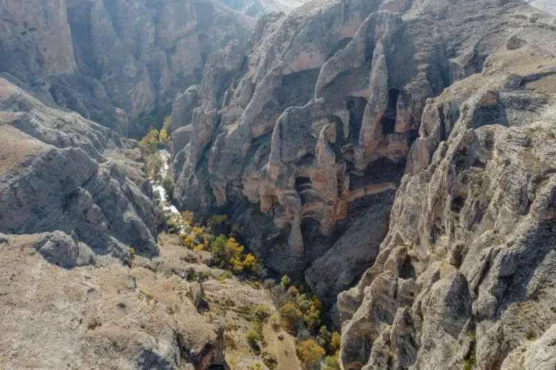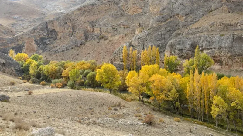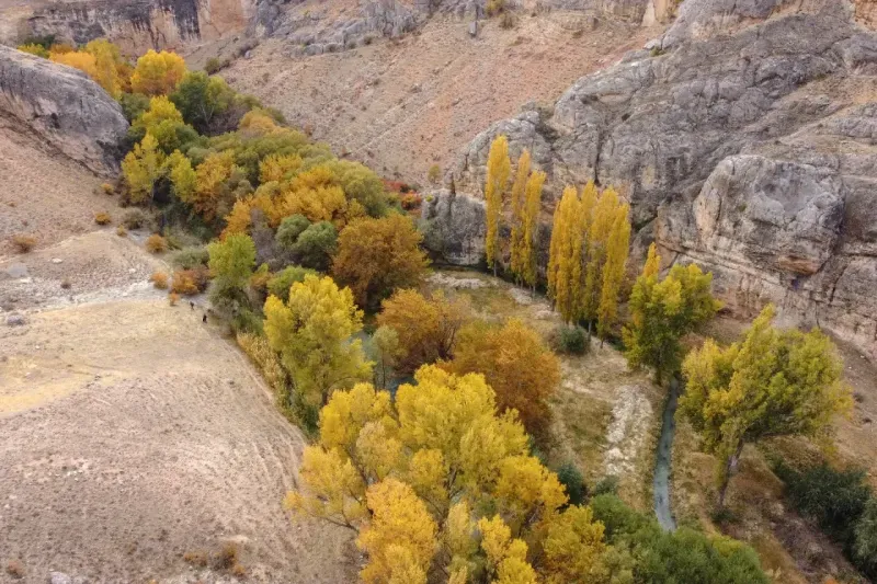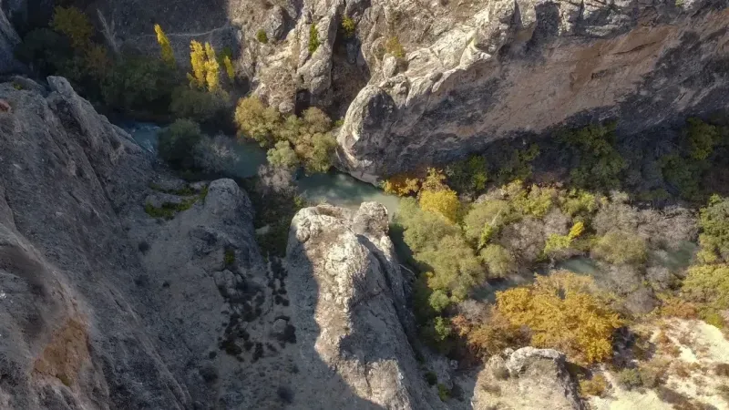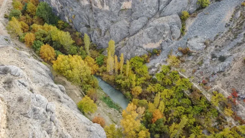 Malatya'nın Darende ilçesinde yer alan ve bölgenin önemli doğal güzellikleri arasında bulunan Tohma Vadisi, etkileyici kaya oluşumlarının yanı sıra içerisinden geçen Tohma Çayı ile dikkati çekiyor. Sakinliği ile doğaseverlerin gezi rotaları arasında bulunan ve sonbaharın etkilerinin hissedildiği vadinin etrafındaki ağaçlar, sarı, turuncu ve kırmızının farklı tonlarına büründü.