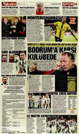 Günün spor manşetlerinde, spor gündemiyle alakalı en yeni gelişmeler ve transfer haberleri belli oldu. 3 Ocak 2025 tarihli gazetelerin spor sayfalarına, Beşiktaş, Fenerbahçe, Galatasaray ve Trabzonspor'un transfer haberlerine, 1 dakikada göz atın.