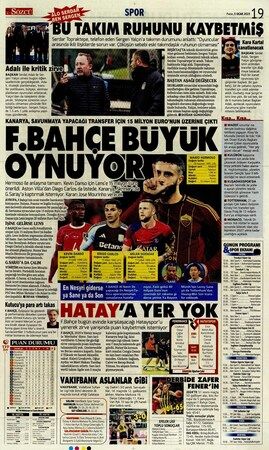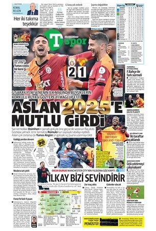 Günün spor manşetlerinde, spor gündemiyle alakalı en yeni gelişmeler ve transfer haberleri belli oldu. 5 Ocak 2025 tarihli gazetelerin spor sayfalarına, Beşiktaş, Fenerbahçe, Galatasaray ve Trabzonspor'un transfer haberlerine, 1 dakikada göz atın.