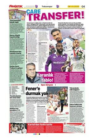 Günün spor manşetlerinde, spor gündemiyle alakalı en yeni gelişmeler ve transfer haberleri belli oldu. 6 Ocak 2025 tarihli gazetelerin spor sayfalarına, Beşiktaş, Fenerbahçe, Galatasaray ve Trabzonspor'un transfer haberlerine, 1 dakikada göz atın.