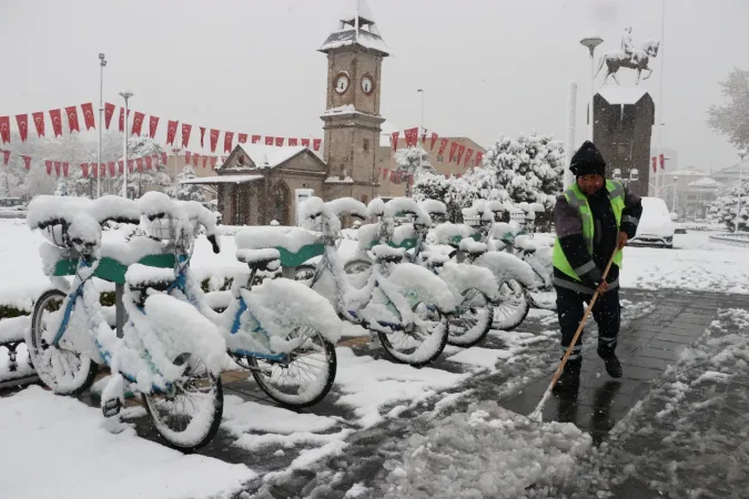 Kayseri'de il genelinde akşam saatlerinden itibaren başlayan kar sonrasında kent merkezindeki evlerin çatıları, araçlar, cadde ve sokaklar beyaza büründü.