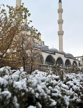 Kırıkkale'de gece saatlerinde başlayan sağanağın yerini kara bırakmasıyla parklar ve binaların çatıları beyaza büründü.