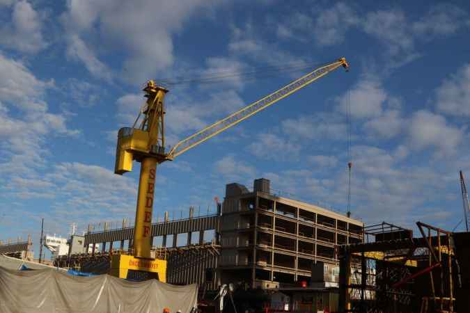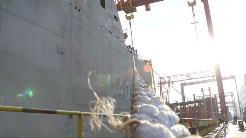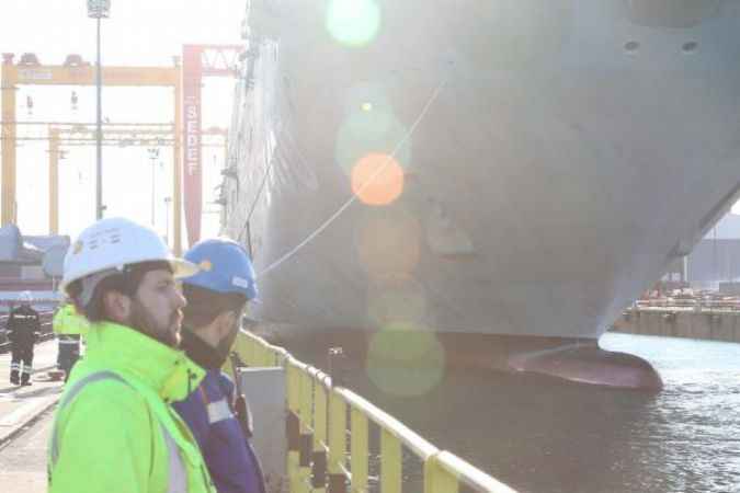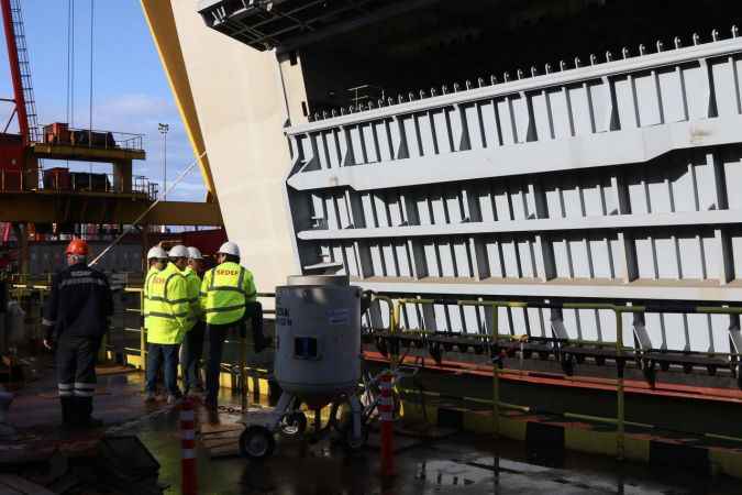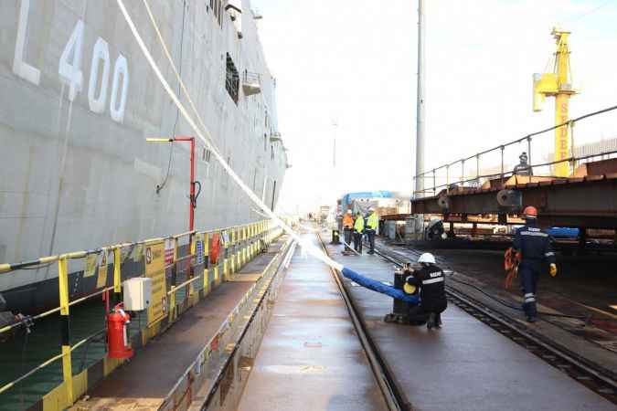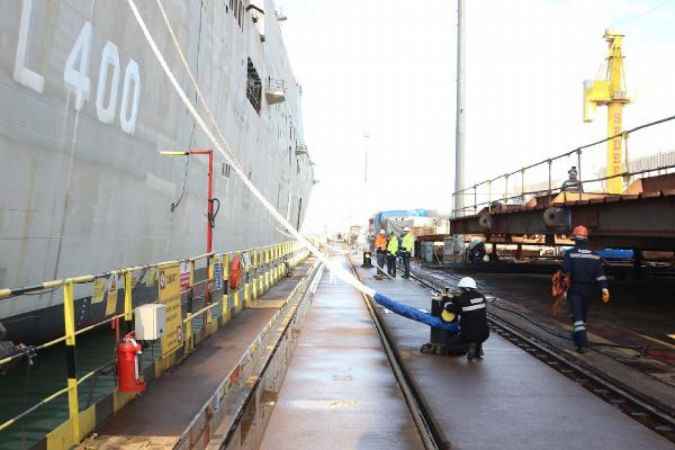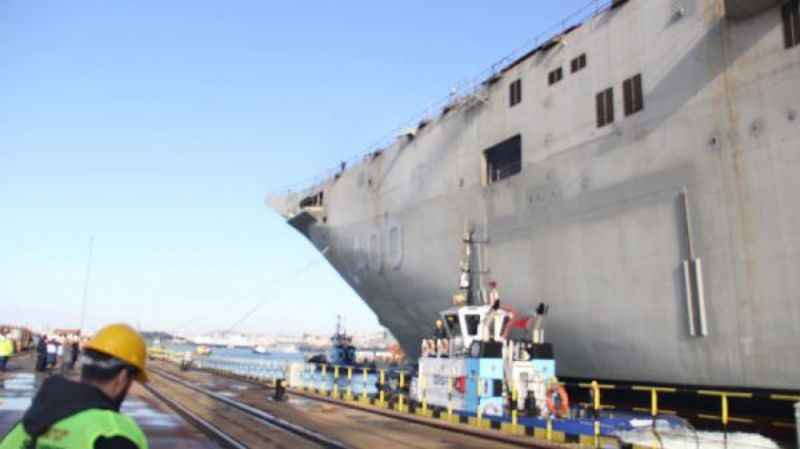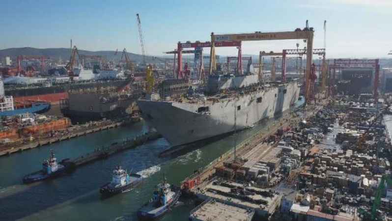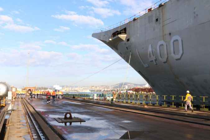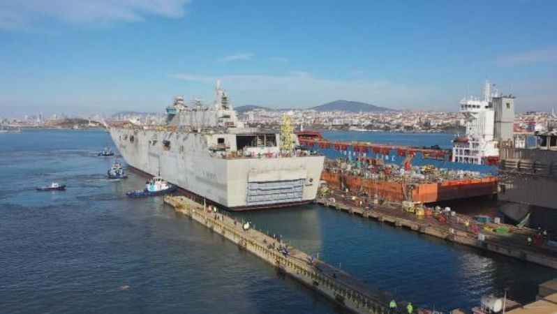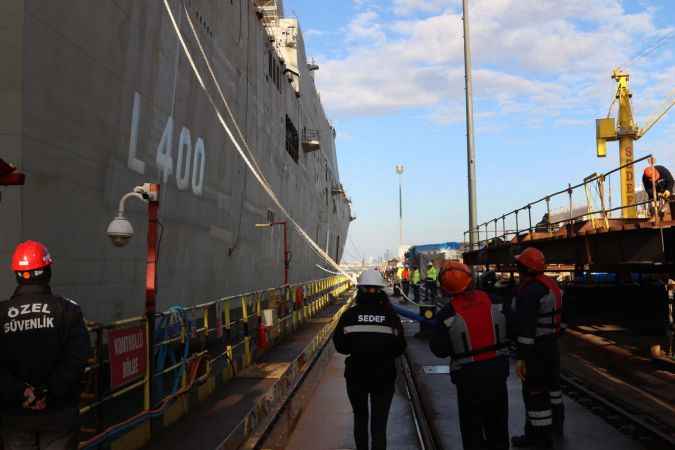 Savunma Sanayi Başkanlığı'ndan alınan bilgiye göre, Türkiye'nin ilk yerli ve milli savaş uçak gemisi "Çok Maksatlı Amfibi Hücum Gemisi TCG Anadolu"nun Tuzla Sedef Tersanesi'ndeki inşasında çalışmalarında sona yaklaşıldı. Geçen yıl denize indirilen geminin inşasının bu yıl içinde tamamlanması bekleniyor. İnşa çalışmalarında bugün de yeni bir aşamaya geçildi. TCG Anadolu, ana tahrik ve sevk sistem entegrasyonunun tamamlanmasının ardından, liman test hazırlıkları için kendisi için hazırlanmış cep rıhtımına alındı.