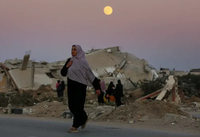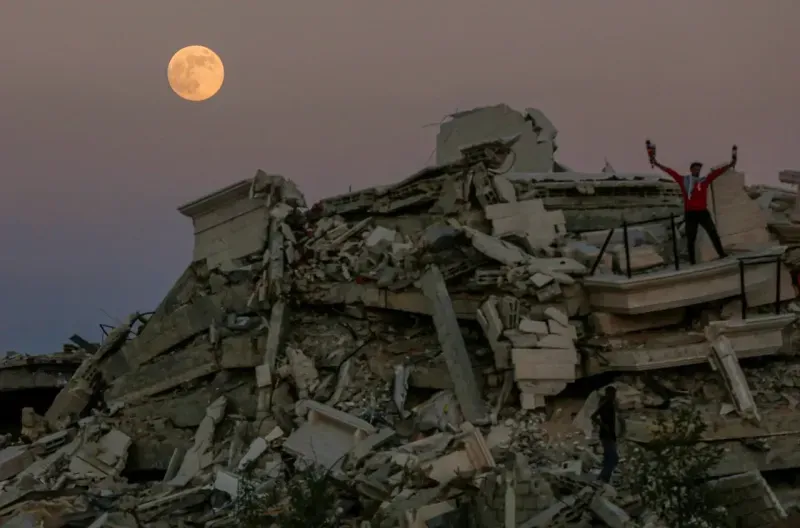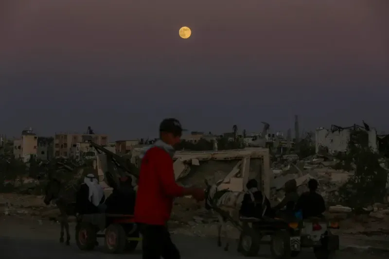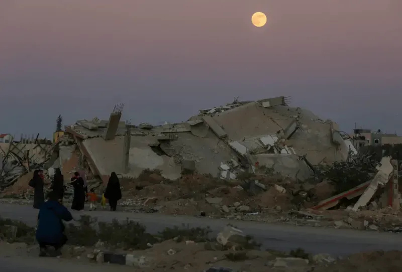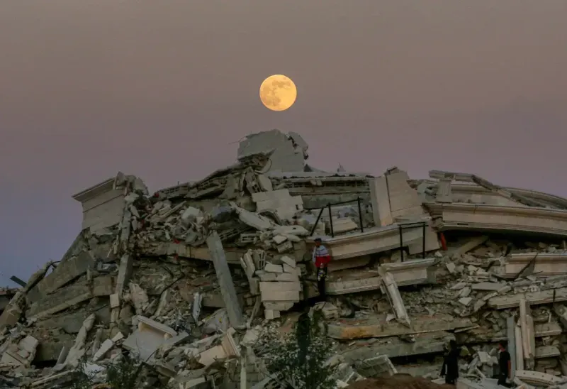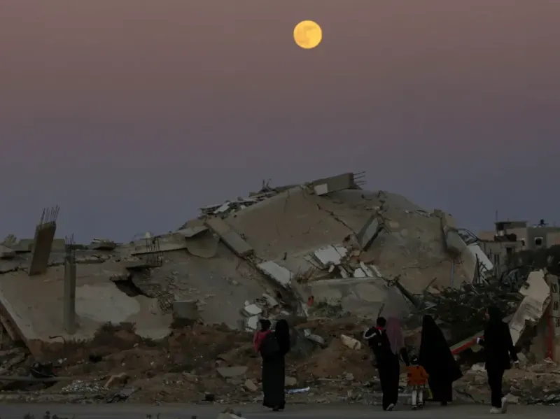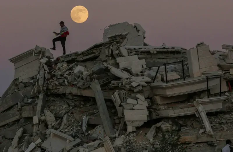 İşgalci İsrail saldırıları altındaki Gazze Şeridi'nin orta kesiminde yer alan Megazi Mülteci Kampı'nda, akşam saatlerinde beliren 'Süper Ay', yıkık binaların üzerinde görüntülendi.