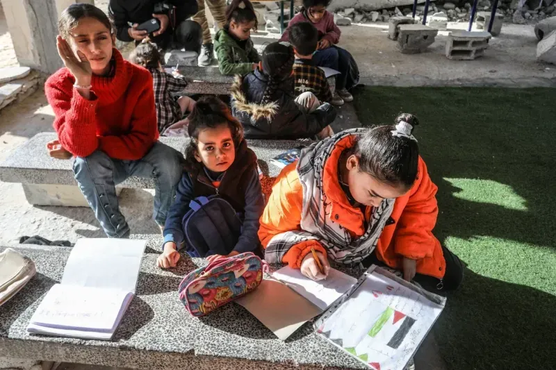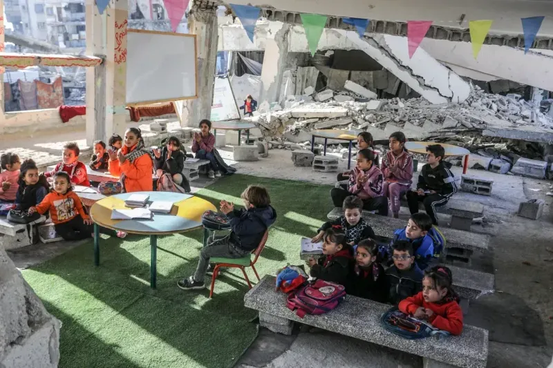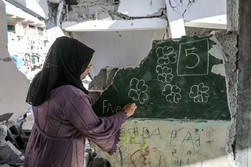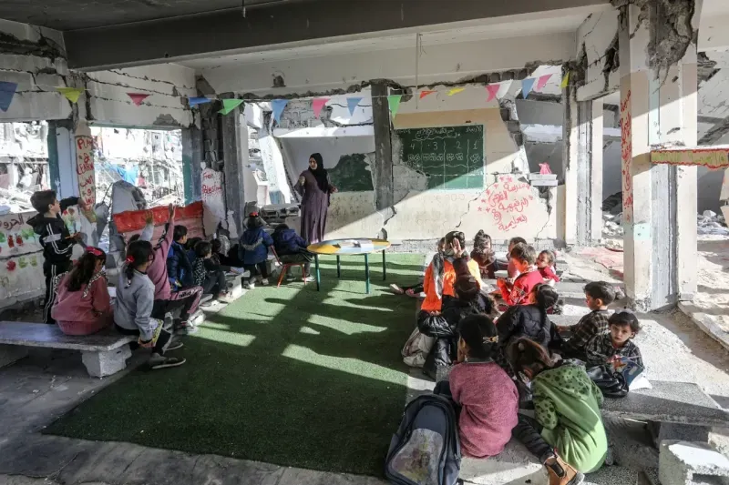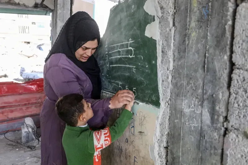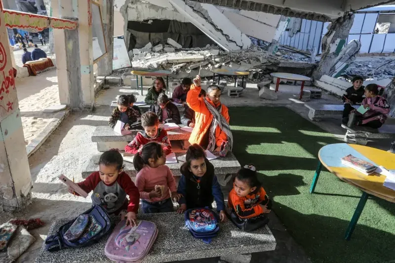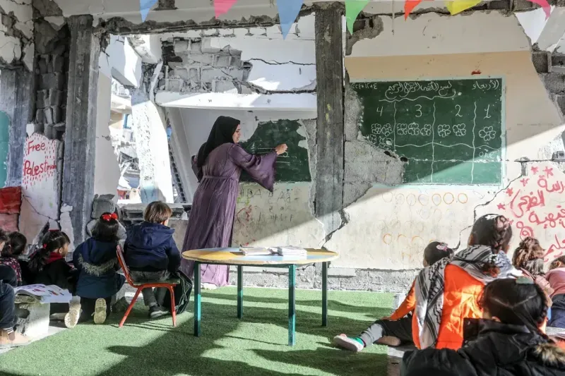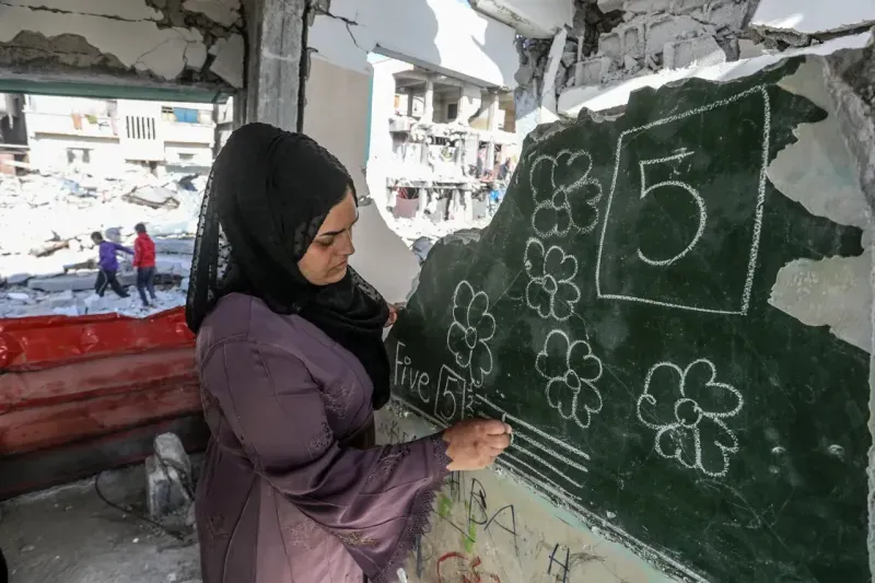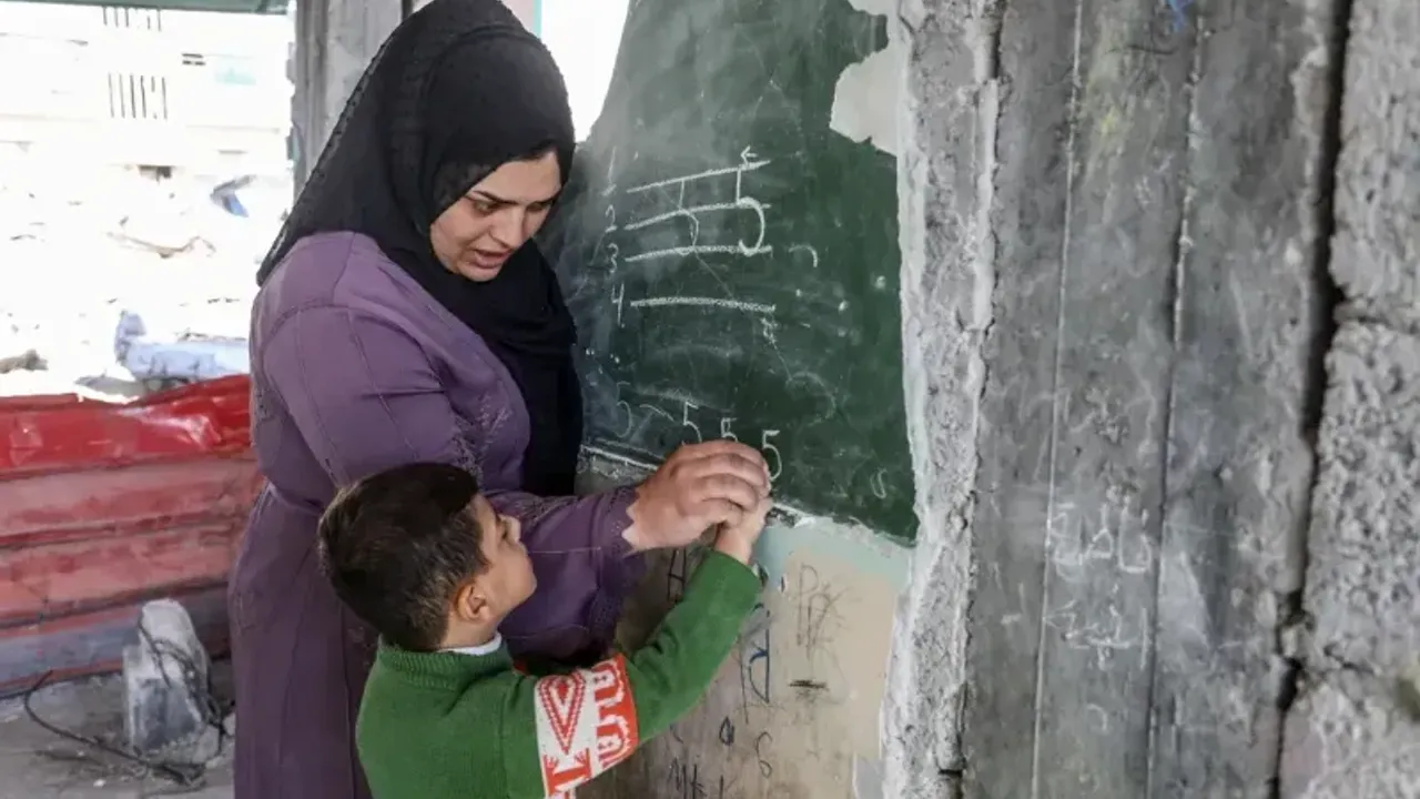 Filistinli öğretmen Doha el-Attar (30), İsrail ordusunun Gazze Şeridi'nin güneyindeki Han Yunus kentine düzenlediği saldırılarda büyük bölümü yıkılan okulun enkazında öğrencilere ders vermeye devam ediyor. Öğretmen Attar, kısıtlı ve zor şartlara rağmen öğrencilerinin eğitimden mahrum kalmaması için çaba sarf ediyor.