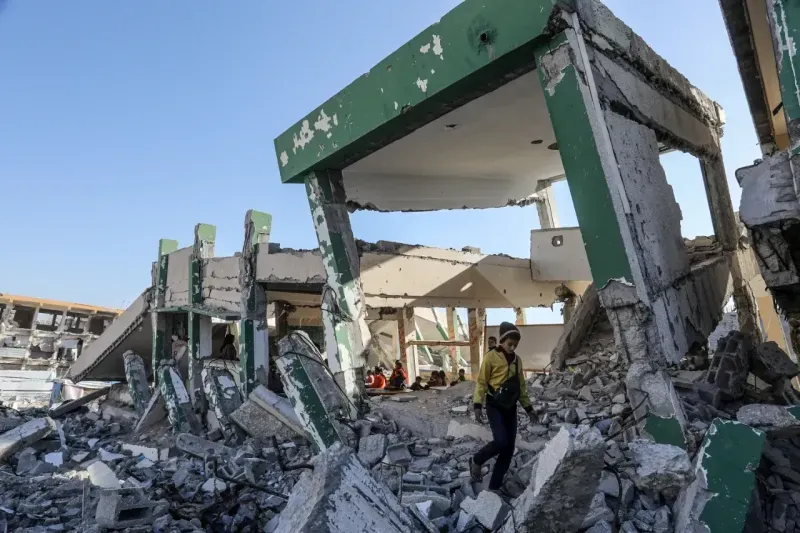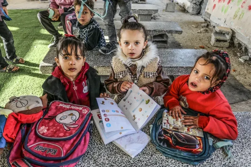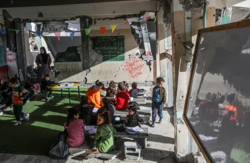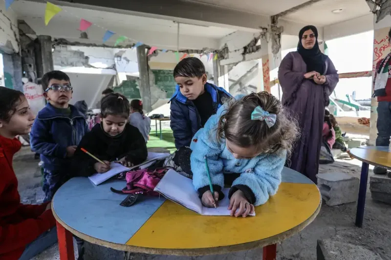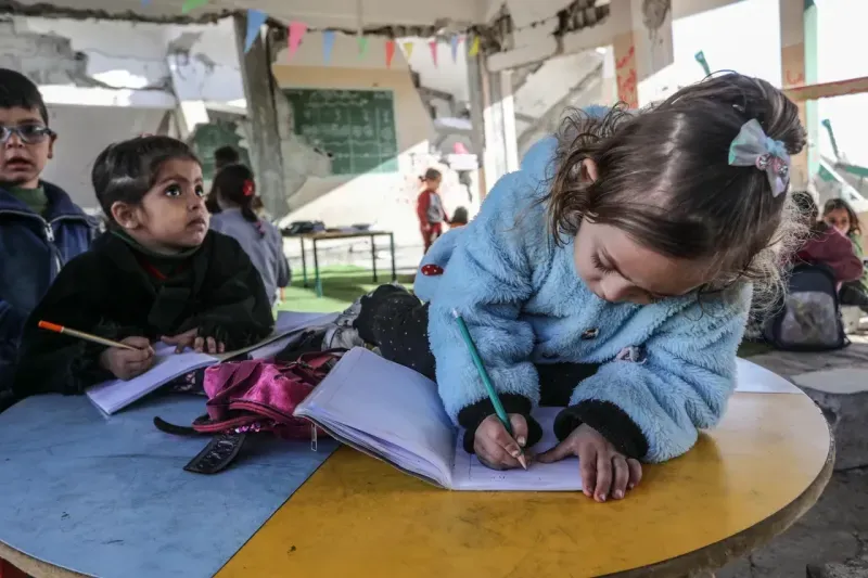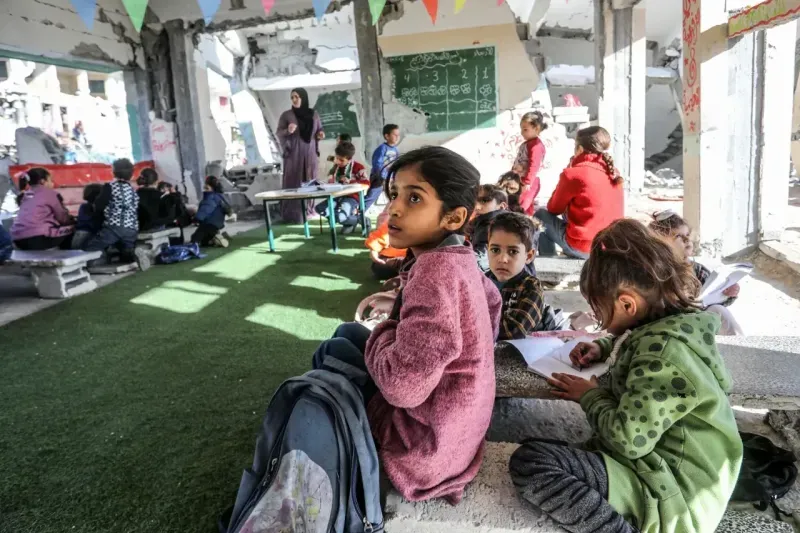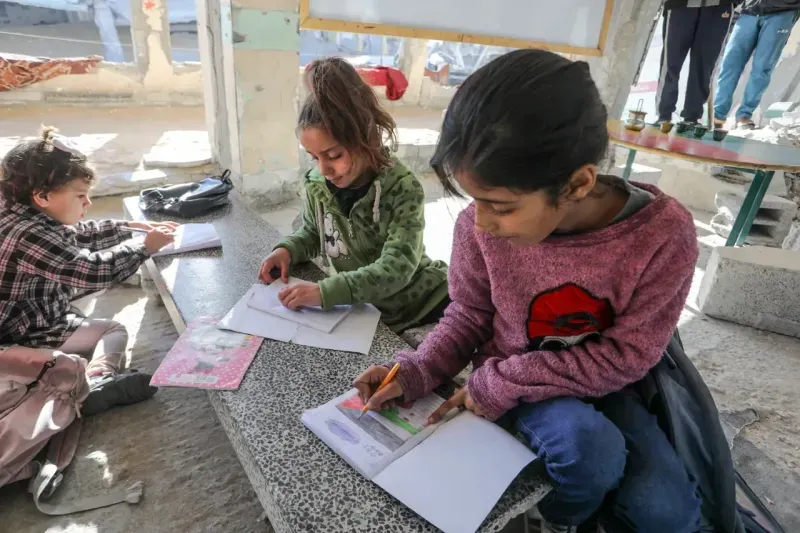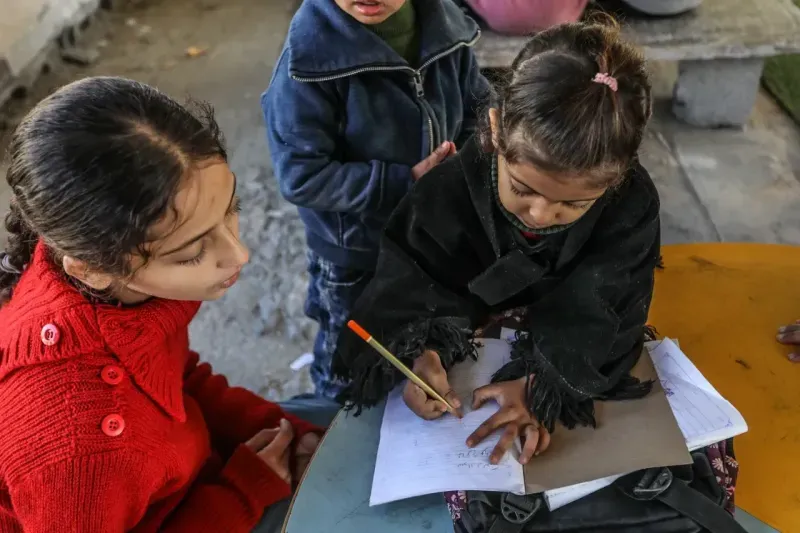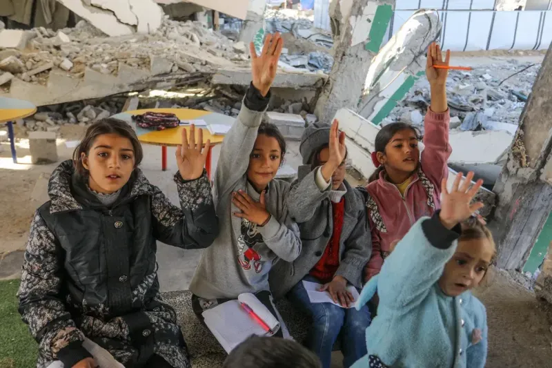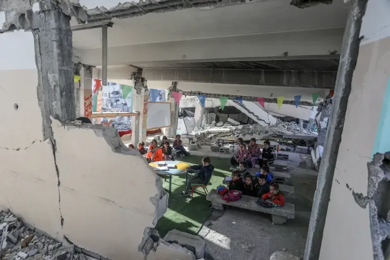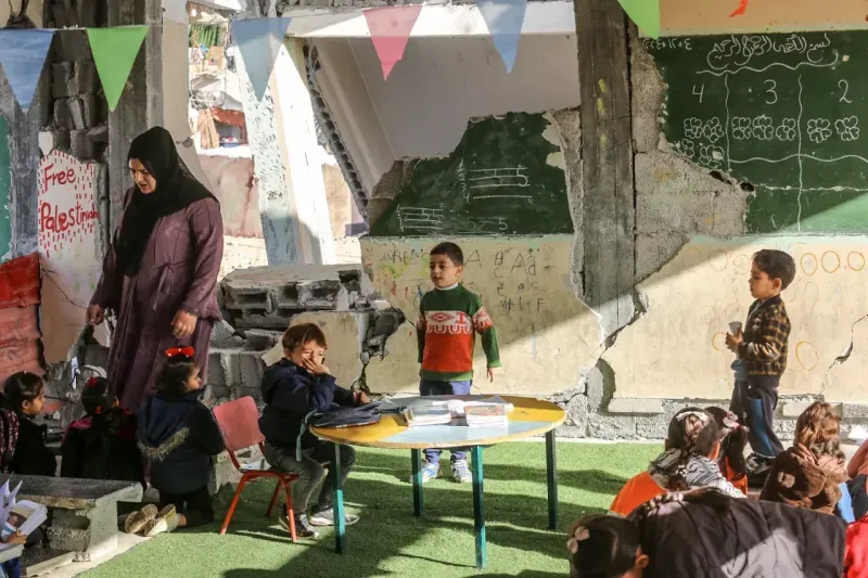 Filistinli öğretmen Doha el-Attar (30), İsrail ordusunun Gazze Şeridi'nin güneyindeki Han Yunus kentine düzenlediği saldırılarda büyük bölümü yıkılan okulun enkazında öğrencilere ders vermeye devam ediyor. Öğretmen Attar, kısıtlı ve zor şartlara rağmen öğrencilerinin eğitimden mahrum kalmaması için çaba sarf ediyor.