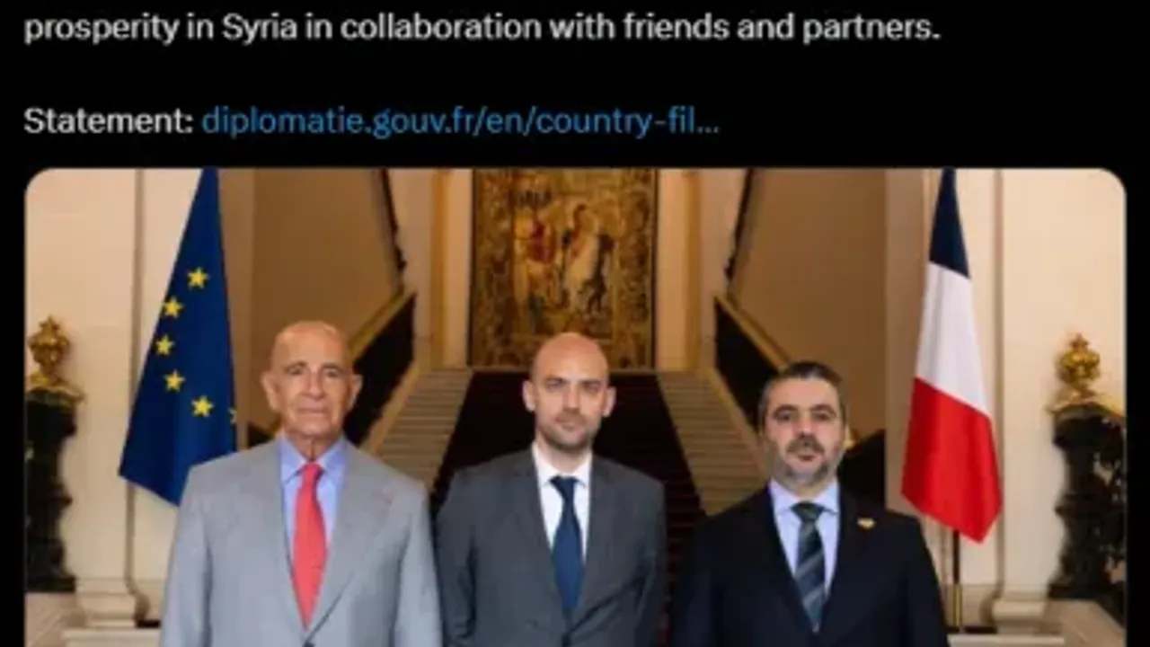 Fransa Dışişleri Bakanı Jean-Noel Barrot, Suriye Dışişleri Bakanı Esad Hasan Şeybani ve ABD'nin Ankara Büyükelçisi ve Suriye Özel Temsilcisi Thomas Barrack, Fransa'nın başkenti Paris'te bir görüşme yaptı. Görüşmenin ardından ortak bir yazılı açıklama yapıldı. Fransa Dışişleri Bakanlığı'nın resmi internet sitesinde yer alan açıklamada, "Suriye konusundaki yakın işbirliğimiz kapsamında, Fransa Dışişleri Bakanı Jean-Noel Barrot, ABD'nin Türkiye Büyükelçisi ve Suriye Özel Temsilcisi Thomas Barrack ile Suriye Dışişleri Bakanı Esad Hasan Şeybani, Suriye için kritik bir dönemde son derece açık ve verimli bir görüşme gerçekleştirdiler" denildi.