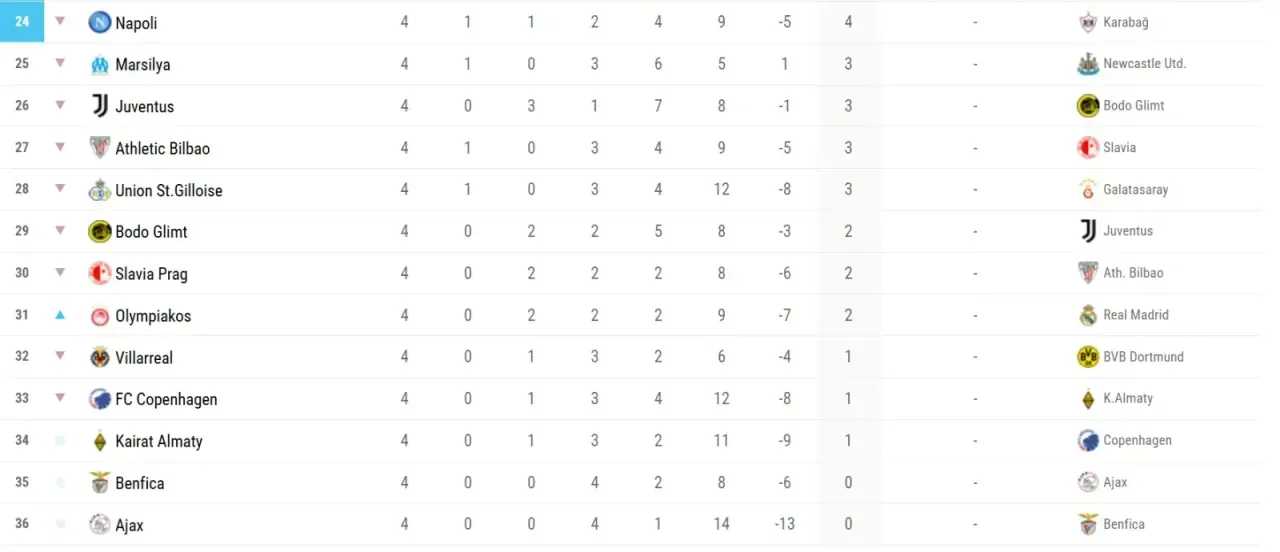 İlk maçta sahasında Inter’e 2-0 yenilen Ajax, ikinci haftada deplasmanda Marsilya’ya 4-0, üçüncü haftada ise Chelsea’ye 5-1 mağlup oldu.