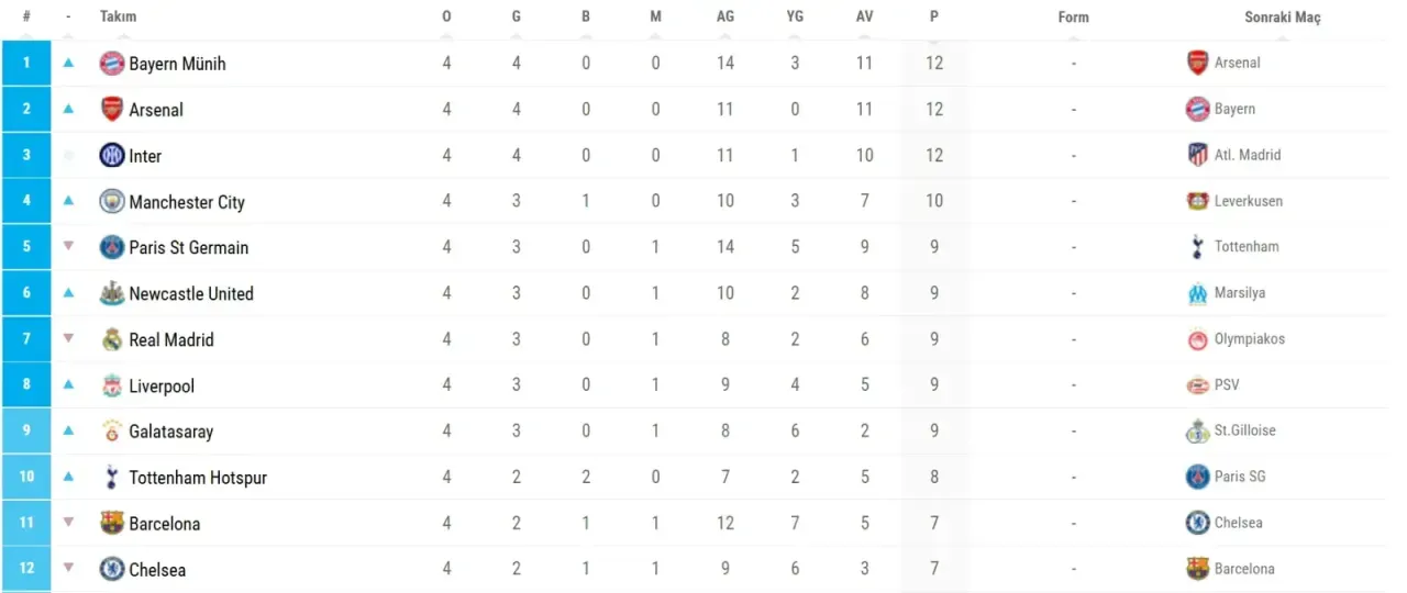 Temsilcimiz Şampiyonlar Ligi'nde 4 maç sonunda puanını 9'a yükselterek 9. sırada yer aldı.