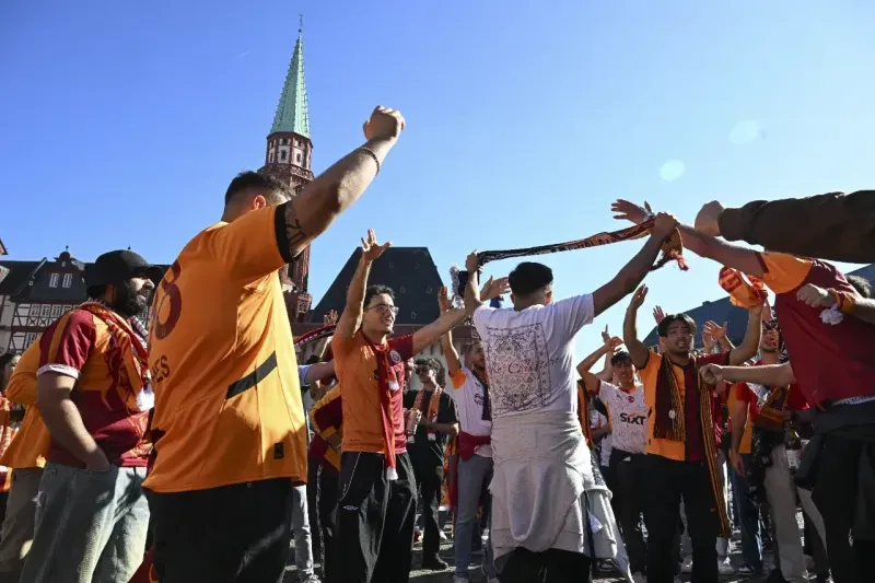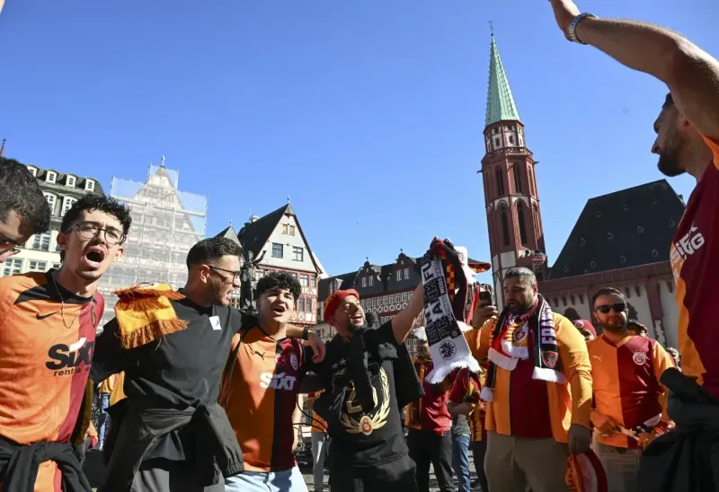 UEFA Şampiyonlar Ligi'nin ilk haftasında Almanya temsilcisi Eintracht Frankfurt ile karşılaşacak olan Galatasaray'ın taraftarları, maç öncesinde Römerberg Meydanı'nda bir araya geldi.