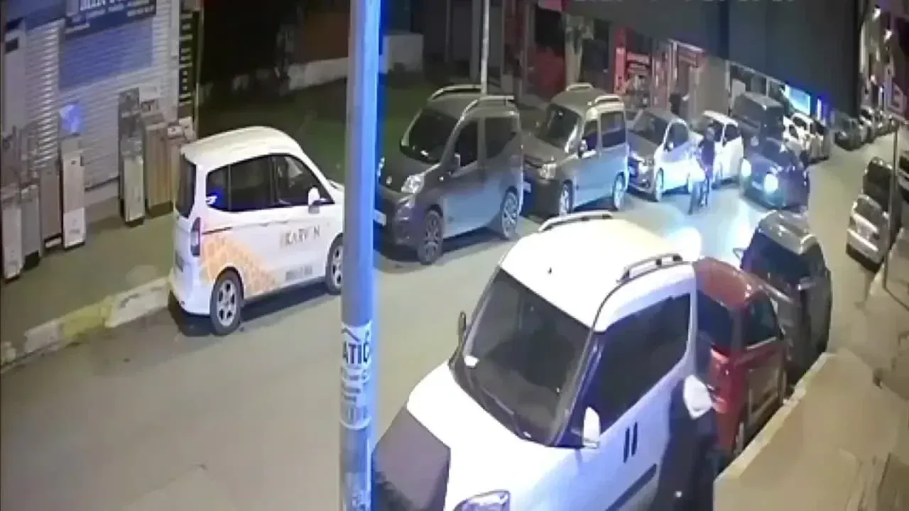 Saldırganların araçların inerek saldırıyı gerçekleştirdikleri, tekmeledikleri ve olay yerinden uzaklaştıkları açıkça görüldü. Paylaşılan görüntüde, olayla ilgisi olan 2 kişinin karakoldan elleri arkadan kelepçeli olarak çıkarıldığı da yer aldı.
