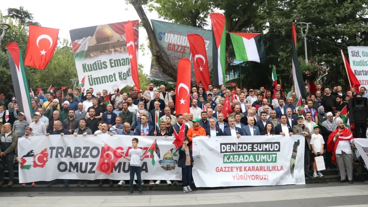Trabzon'da İsrail ablukasını kırmak ve Gazze'ye insani yardım ulaştırmak amacıyla yola çıkan Küresel Sumud Filosu'na destek için yürüyüş yapıldı. Özgür Aksa Platformunca düzenlenen "Gazze yanarken Sumud'umuz Gazze'ye" programı kapsamında ellerinde Türk ve Filistin bayrakları taşıyan vatandaşlar, Zağnos Köprüsü'nde bir araya gelerek 15 Temmuz Şehitleri ve Hürriyet Parkı'na yürüdü.