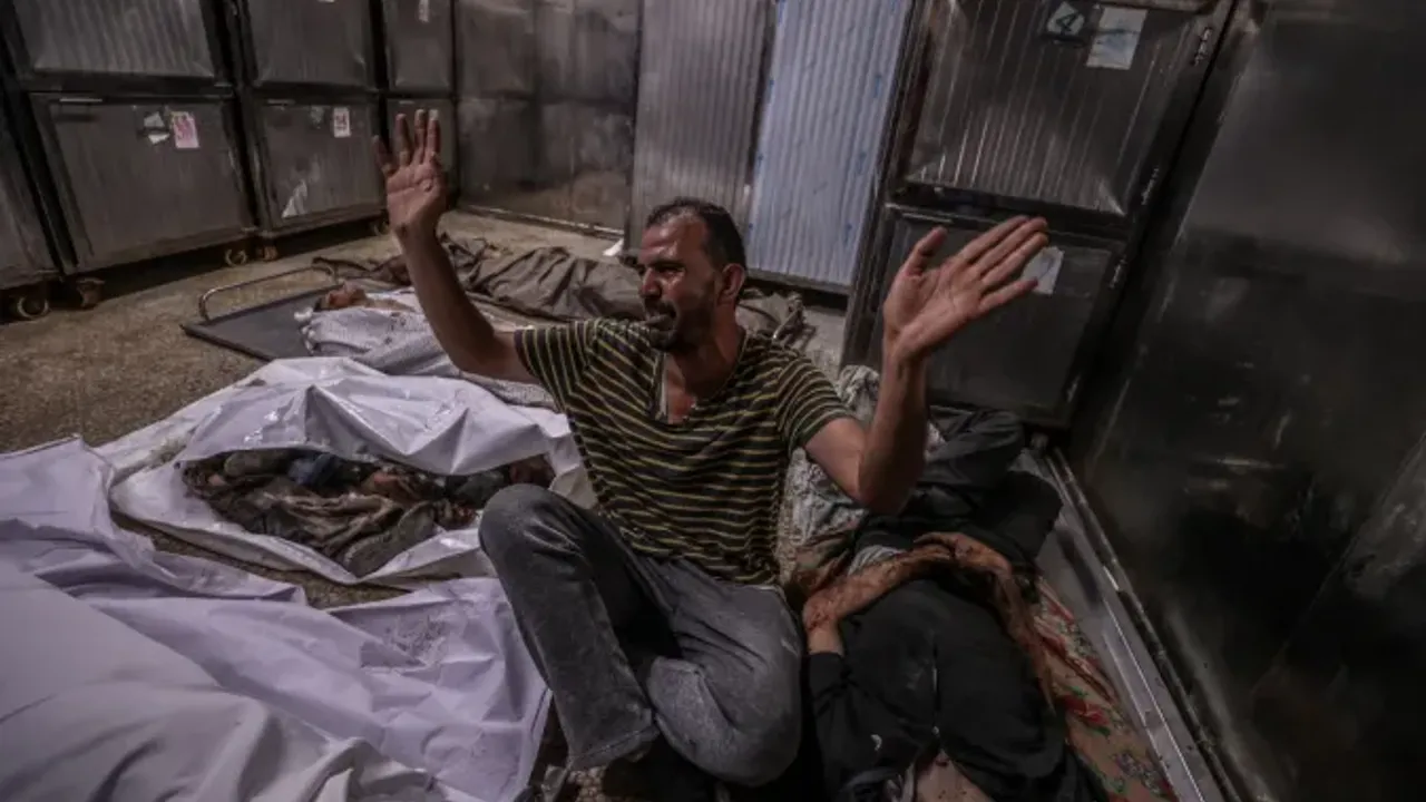 Hamas ile varılan ateşkesi ihlal ederek Gazze Şeridi'ne yeniden saldırılar başlatan barbar İsrail ordusu, katliamlarına devam ediyor. Barbarlar Güvenlik Kabinelerinde bölgede yeniz bir katliam ve genişleme planını onaylamış, İsrail ordusu da kara harekatına başladığını duyurmuştu. Öte yandan ateşkese kesinlikle yanaşmayan Gazze kasabı Netenyahu, Filistinlileri güneye sürmek, buradaki toplama kamplarında hayatta kalabilecekleri kadar insani yardım verilecek bir planı da açık etmişti. İsrail ordusu Han Yunus kentinin tahliyesini istemiş Filistinliler yanlarına alabildikleri eşyalarla birlikte bir bilinmezliğe doğru göç yolculuğuna çıkmışlardı. Barbarlar saldırmaya devam ediyor, Gazze'ye şehadet yağıyor. Katil İsrail ordusunun, Gazze kent merkezine düzenlediği saldırıda şehit edilen Filistinlilerin cenazeleri, Şifa Hastanesi'ne getirildi. Yakınları, işlemlerin ardından cenazeleri teslim alarak hastane avlusunda cenaze namazı kıldı. Saldırıda yakınlarını kaybeden Filistinliler, üzüntü yaşadı.