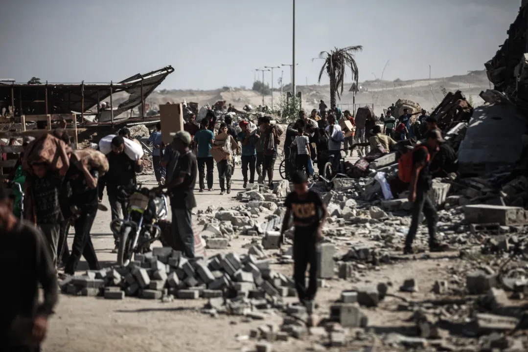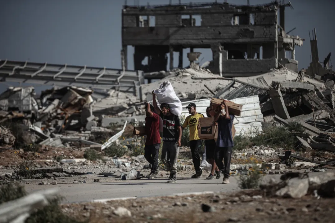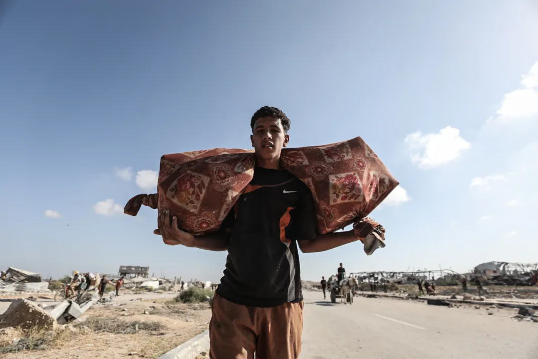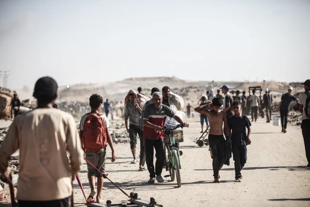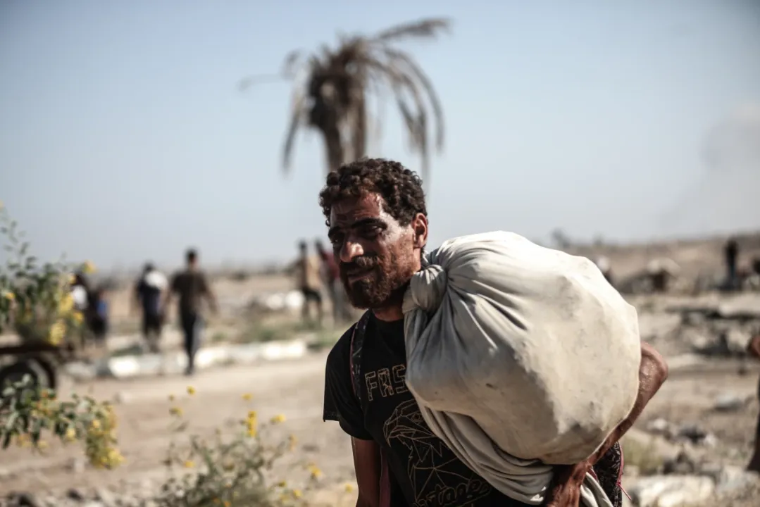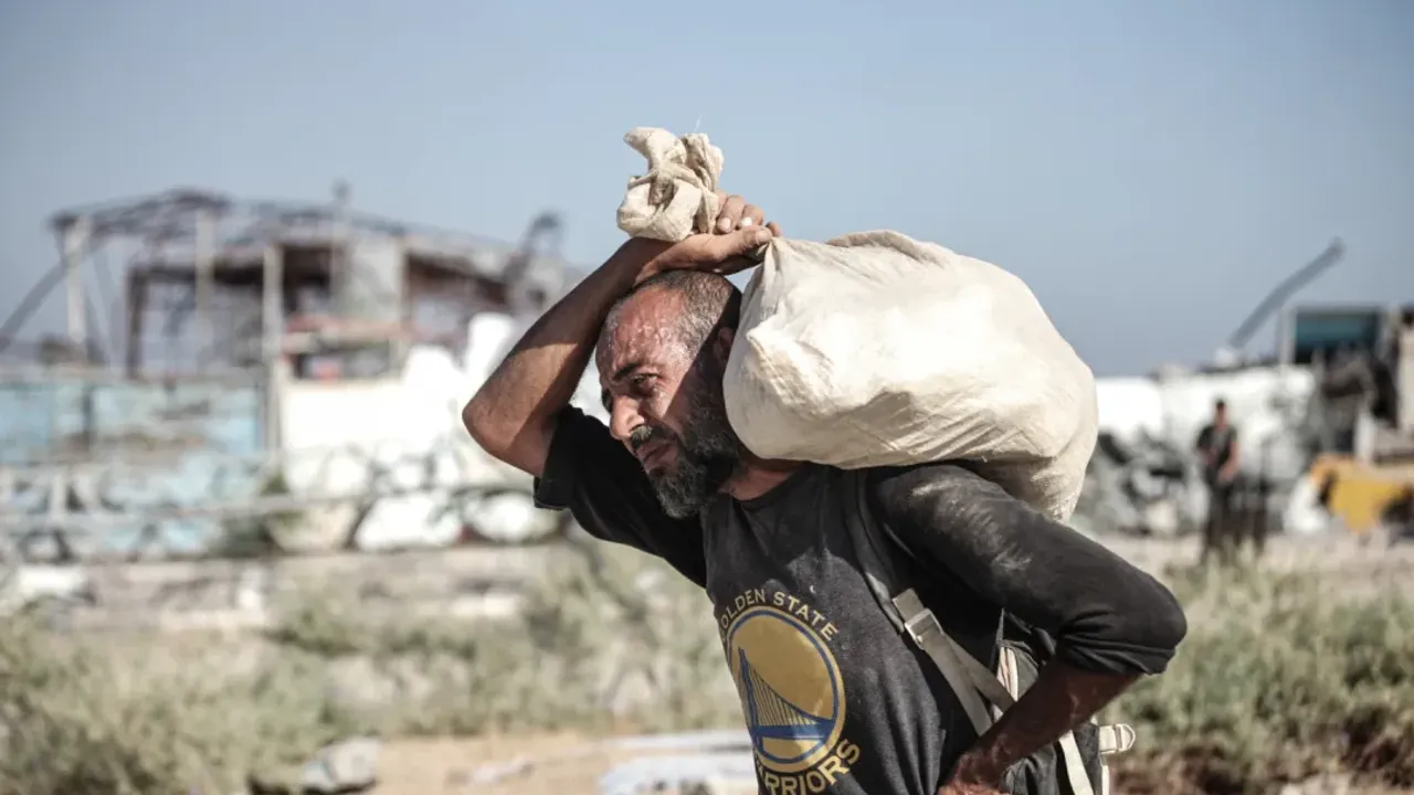 Gazze'de soykırımlarına devam eden İsrail, aynı zamanda açlık, kıtlık ve susuzluğu da bir silah olarak kullanarak Filistinlileri öldürüyor. İsrail'in açlığa mahkum ettiği Gazze'de Filistinliler, tehlikeli olmasına rağmen Netzarim bölgesindeki yardım merkezine akın etti. Kısıtlı miktarda yardıma erişen Filistinliler, aldıkları gıda ürünlerini çadırlarına taşıdı.