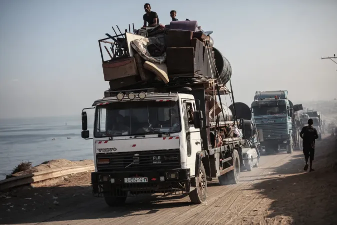 İsrail ordusunun Gazze Şeridi’nin kuzeyindeki bölgelere yönelik yoğun saldırıları ve zorunlu tahliye uyarıları nedeniyle Filistinliler, yanlarına alabildikleri eşyalarla araçlarıyla veya yaya olarak Reşid Caddesi üzerinden Gazze’nin güneyine doğru göç etmeye devam ediyor.