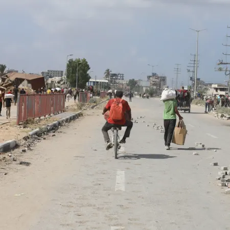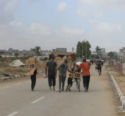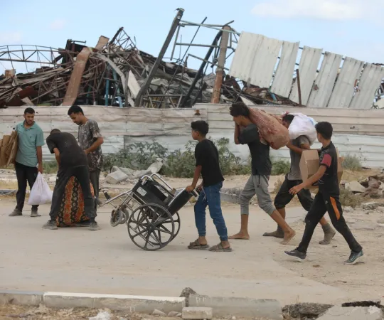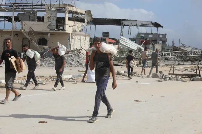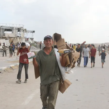 İsrail ordusunun acımasız saldırıları ve ambargosu altındaki Gazze Şeridi'nde açlığa mahkum ettiği Filistinliler, kısıtlı miktarda dağıtılan gıda malzemelerinden alabilmek için Netzarim Koridoruna akın etti.