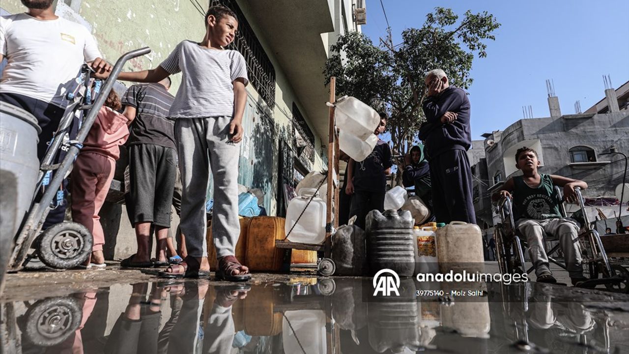 Gazze’de ateşkes sağlanmasına rağmen, İsrail saldırılarında altyapının ağır hasar görmesi nedeniyle bölgede su krizi sürüyor. Nuseyrat Kampı’ndaki Filistinliler, belediyenin kurduğu su deposundan bidonlarla su doldurarak yaşam alanlarına taşımak zorunda kalıyor.