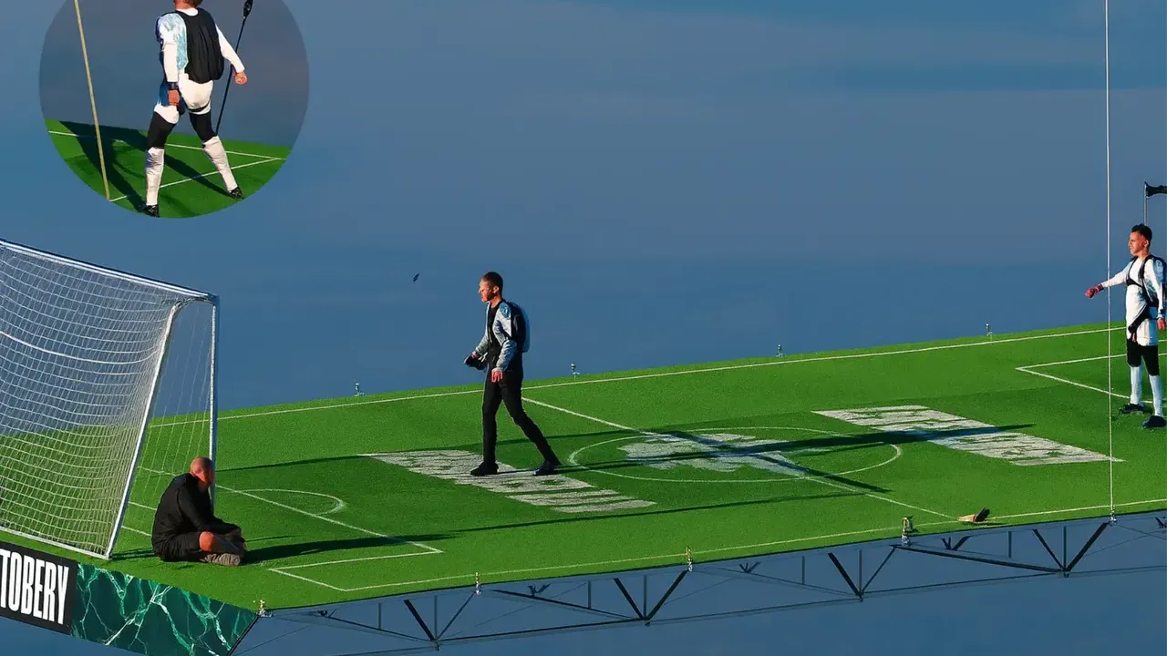 Bu kez yanında ekibiyle birlikte 1800 metre yükseklikte, sıcak hava balonunun altına sabitlenmiş 5x3 metrelik özel bir sahada futbol oynadı.