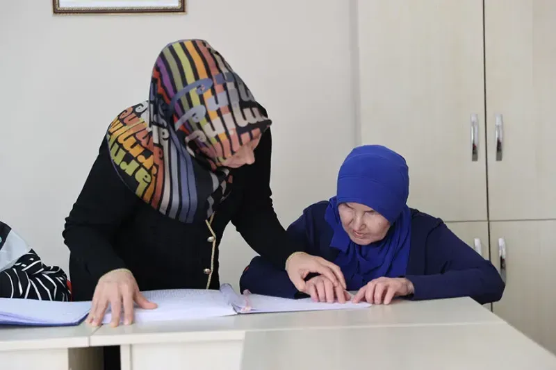 Yadigar Kürkgiyen, AA muhabirine, dini içerikli kaset ve radyo programları dinleyerek ayetleri ezberlemeye çalıştığını, 2 yıldır da kursa katılarak eğitime devam ettiğini söyledi.Küçük yaşlardan beri Kur'an-ı Kerim öğrenmeyi çok istediğini anlatan Kürkgiyen, "12 yaşında Kur'an-ı Kerim'i normal olarak öğrenmiştim. Ezberim de kuvvetli. Okuyarak daha fazla ezberlemeyeceğim inşallah. Okuyunca çok rahatlıyorum. Herkese tavsiye ediyorum hiçbir şey için geç değildir. Gözlerim tavuk karası hastalığından dolayı 28 yaşında tamamen kapandı. Küçük yaşlarımda da yavaş yavaş kapanıyordu. Kitap okumayı çok seven bir insandım. Kur'an-ı Kerim'i noktalı sistemle öğrenebileceğimi hiç zannetmiyordum ama Kur'an-ı ezberlemeyi istiyorum. Allah ömür verirse ayet ayet ezberlemeyi düşünüyorum. Önceden kasetlerden dinleyerek ezber yapıyordum ama şimdi okuyarak ezberlemek daha güzel. Hafız olmayı çok istiyorum."dedi.Görme engeli bireylere de morallerini bozmamaları tavsiyesinde bulunan Kürkgiyen, "Çünkü Rabbimiz bir kapıyı kapatıyorsa başka bir kapıyı mutlaka açıyor. Telefonları ellerine alıyorlar ve çok vakit ayırıyorlar. Telefonlara ayırdıkları zamanların yarım saatini ayırsalar Kur'an-ı Kerim'i öğrenmiş olurlar." diye konuştu.Kürkgiyen, azimle yapılan işlerde her zaman başarının geleceğini sözlerine ekledi.