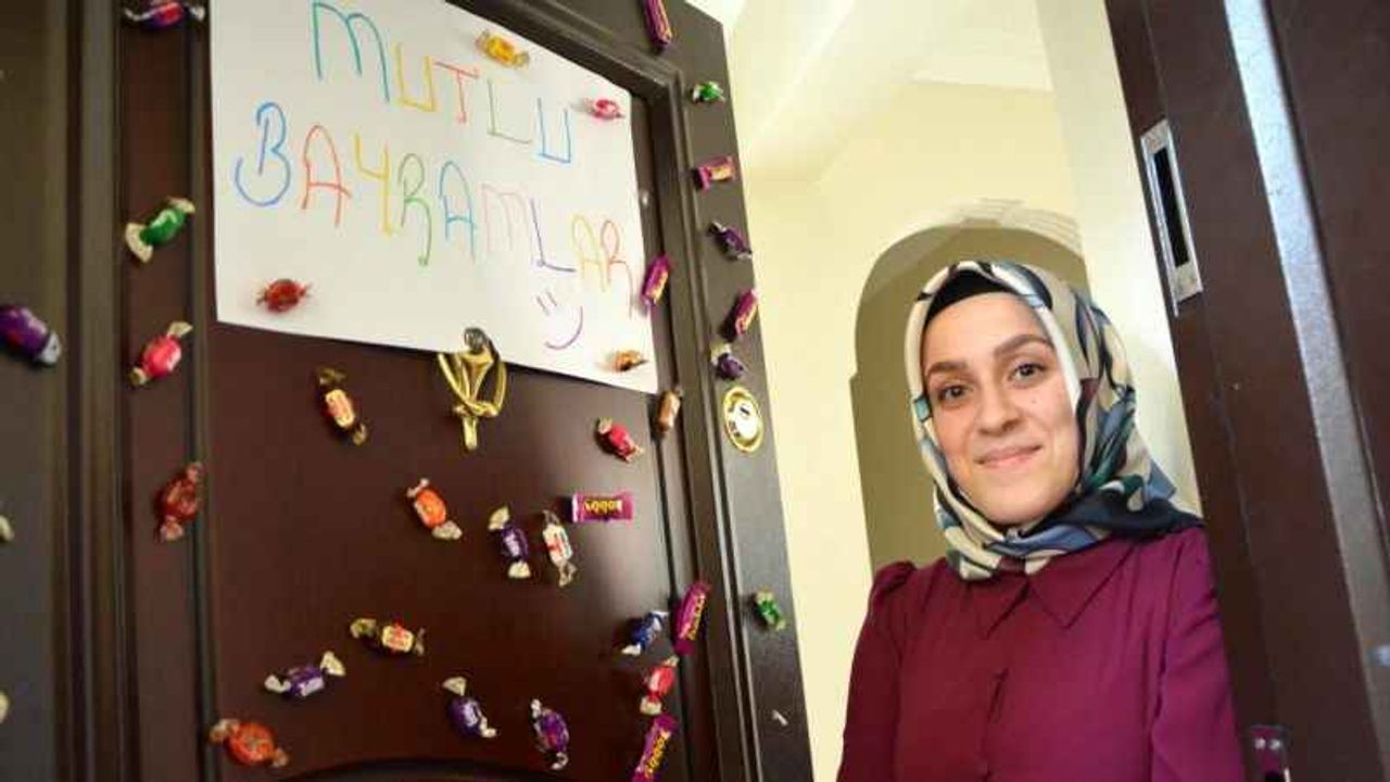 Karabük Üniversitesi Safranbolu Meslek Yüksek Okulu İşletme Yönetimi 2'nci sınıf öğrencisi Derya Arslan, Kurban Bayramı'ndaailesinin köydeki yakınlarının yanına gitmesi üzerineyalnız kaldı. Üniversite okurken bir taraftan da kafedeçalışarak harçlığını çıkaran Arslan, bayramda çalışmaya devam etti.Arslan, bayram boyunca bayramlaşma için eve gelen çocukların eli boş geriye dönmemesi için ilginç bir yöntem buldu. Arslan, 4 katlı apartmanın 2'nci katındaki evlerinin kapısına onlarca çikolata ve şeker yapıştırıp, 'Mutlu bayramlar' yazdı.Zile basan çocuklar, kapıyı açan olmayınca şeker ve çikolatalardan alarak apartmandan ayrıldı.