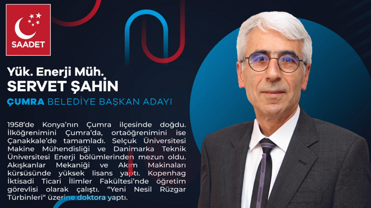 Saadet Partisi’nin 31 Mart 2024 Mahalli İdareler Seçimi Çumra Belediye Başkan adayıdır.