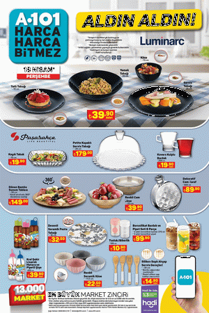 Ayrıca A101 markette bu hafta Luminarc marka tabak çeşitleri 39,90 TL'den satışa çıkacak.