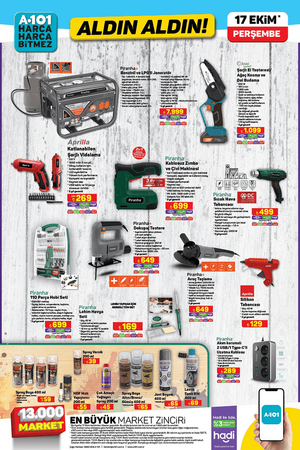 A101 market 17 Ekim Perşembe Aldın Aldın kataloğunu açıkladı. Bu hafta A101 markette, APEC 150 cc Maxi Scooter, English Home Stand Mikser Hamur Yoğurucu, Sarex Tost Makinesi,