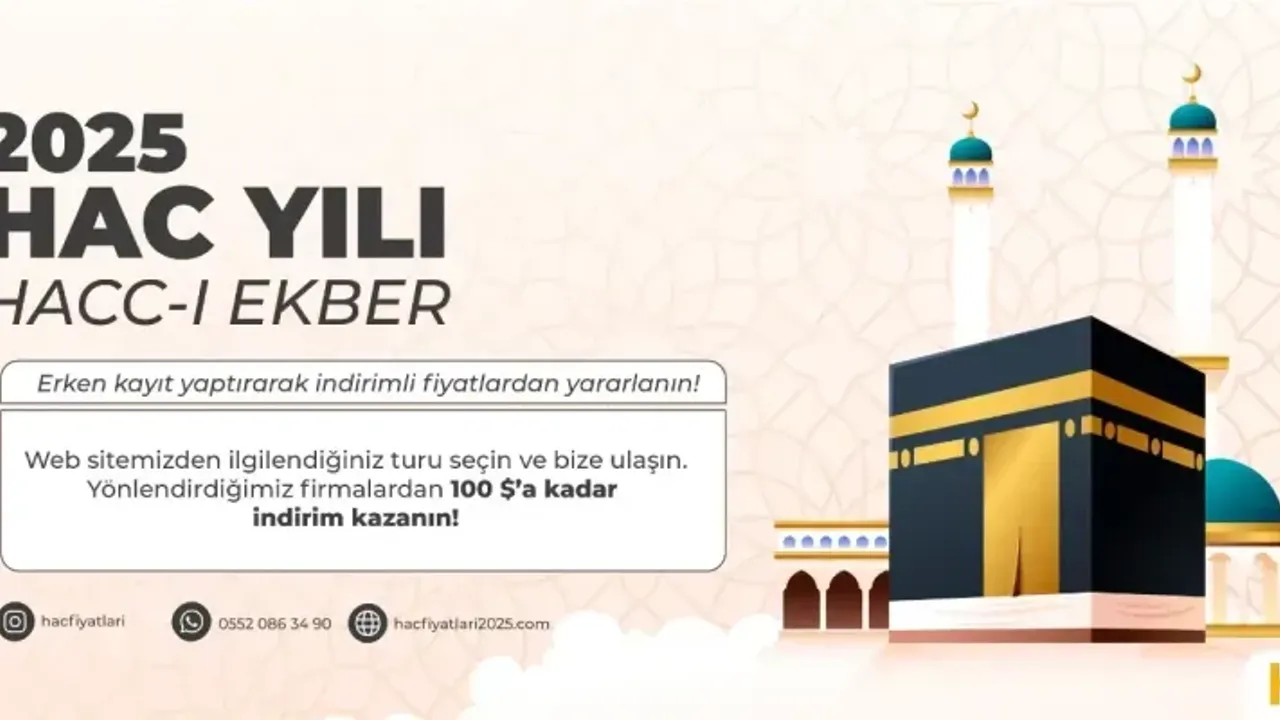 Önümüzdeki Hac sezonu, âlem-i İslâm'ın “Hacc-ı Ekber” olarak kabul ettiği hac yılı! 2025 yılı Hac fiyatları ve tur seçeneklerini izleyebileceğiniz bir yer arıyorsanız, doğru yerdesiniz. Bu manevi yolculuğunuzu güvenle planlamak için hemen sitemizi ziyaret edin: