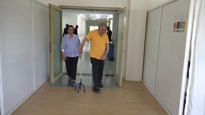 Kayseri'de beynine pıhtı atması sonucu felç kalan 70 yaşındaki Metin Yıldız, sedyeyle getirildiği Kozaklı Fizik Tedavi ve Rehabilitasyon Hastanesi'ndeki tedavisinin ardından yeniden yürümeye başladı.