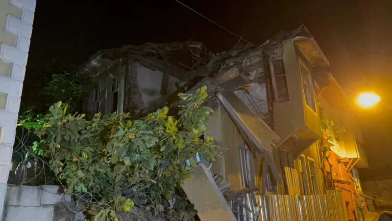 Ayvansaray Mahallesi Yatağan Hamamı Sokak'taki iki katlı metruk bina henüz bilinmeyen nedenle çöktü.