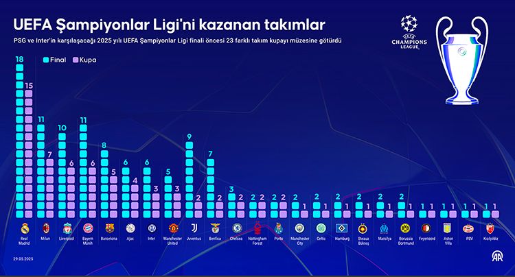 Avrupa futbolunun kulüp düzeyindeki en önemli turnuvasının finalinde İtalya temsilcisi Inter ile Fransız ekibi PSG karşı karşıya gelecek.