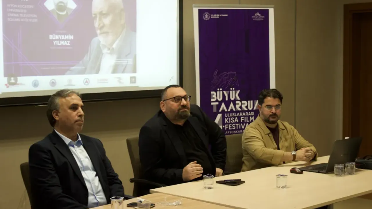 Yazar Mahmut Bıyıklı, akademisyen Burhanettin Güneş ve kültür sanat habercisi Bünyamin Yılmaz, Afyon Kocatepe Üniversitesi Sinema Televizyon Bölümü Atölyelerinde gerçekleştirilen söyleşide, usta yönetmenin Türk sinemasındaki özgün yeri üzerine tespitlerini paylaştı.