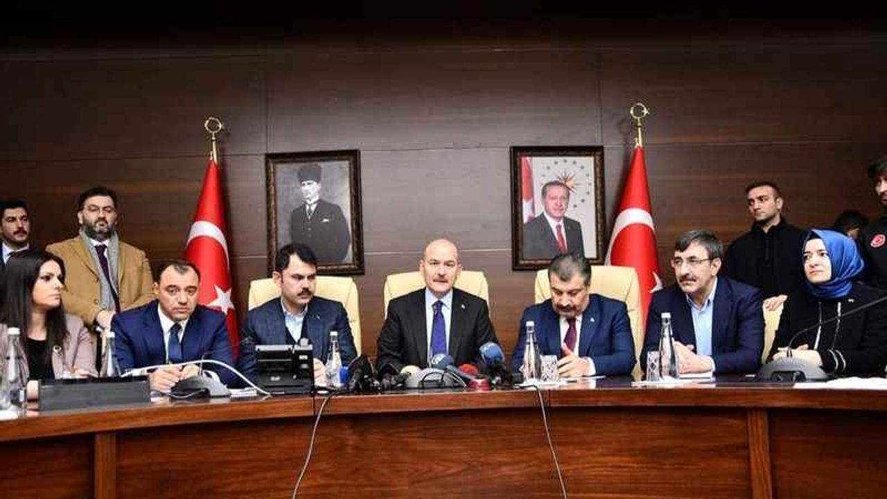 Depremin meydana geldiği 24 ocak tarihinden beri Elazığ'da olan İçişleri Bakanı Süleyman Soylu, Sağlık Bakanı Fahrettin Koca ve Çevre ve Şehircilik Bakanı Murat Kurum birazdan Elazığ Valiliği'ndeki kriz masasında depremin son bilançosunu açıkladı.