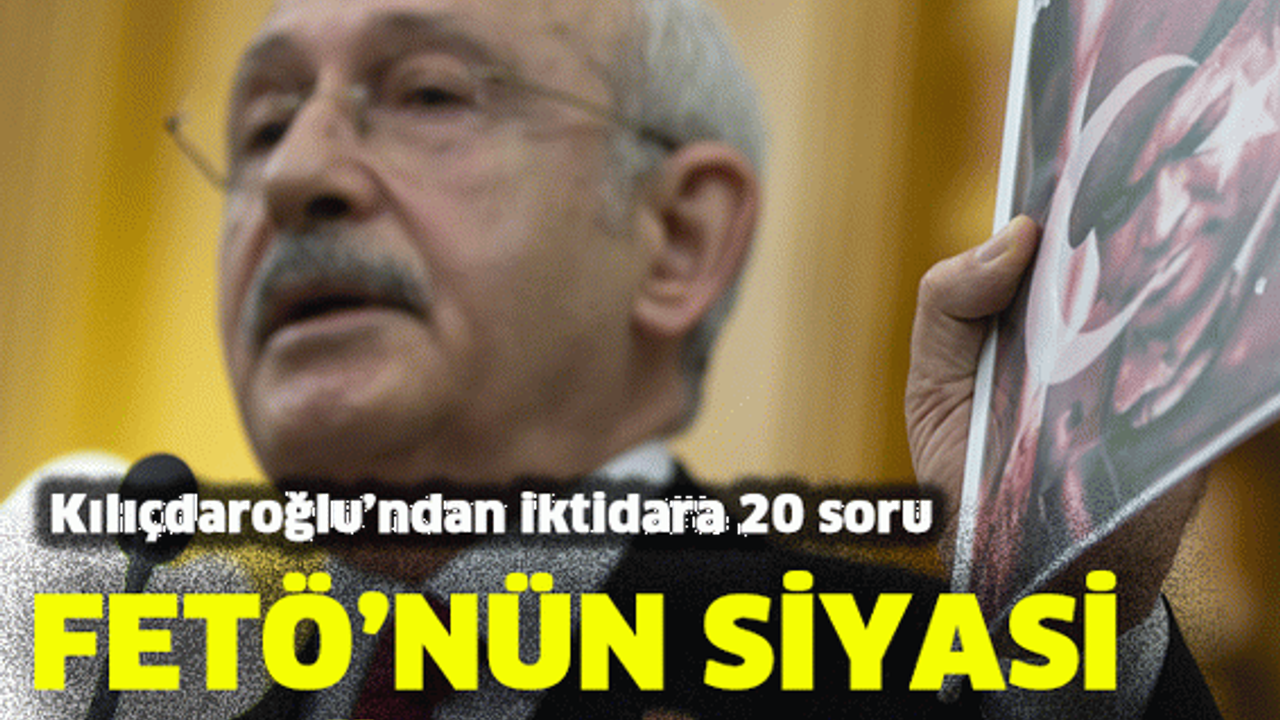 Cumhuriyet Halk Partisi (CHP) Genel Başkanı Kemal Kılıçdaroğlu, partisinin haftalık grup toplantısında gündemdeki konulara ilişkin değerlendirmelerde bulundu. Geçtiğimiz salı sözlerini "FETÖ'nün siyasi ayağını haftaya anlatacağım" sözleriyle sonlandıran CHP Genel Başkanı Kemal Kılıçdaroğlu, partisinin grup toplantısında dikkat çeken ifadeler kullandı. 20 soruya 20 cevap veren Kılıçdaroğlu, "Devleti FETÖ'ye teslim eden kişinin adı Recep Tayyip Erdoğan'dır." dedi.