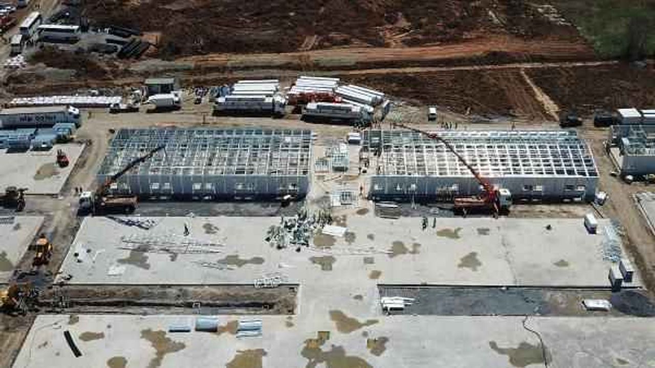 Çok sayıda iş makinesinin ve işçinin çalıştığı inşaat alanında binaları oluşturacak metal iskeletler oluşmaya başladı.