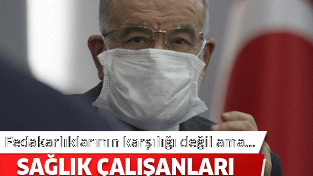 Saadet Partisi Genel Başkanı Temel Karamollaoğlu, partisinin sosyal medya hesaplarından gündeme ilişkin değerlendirmelerde bulundu. Karamollaoğlu, "Hükümete önerimiz, bütün sağlık çalışanlarına hiç olmazsa bayram öncesi bir maaş ikramiye verilmesidir. Bu onların emeklerinin, fedakarlıklarının karşılığı kesinlikle değildir ama bu fedakarlık ve gayret karşısında da iktidarın bir şeyler yapmasına ihtiyaç vardır kanaatindeyim." dedi.