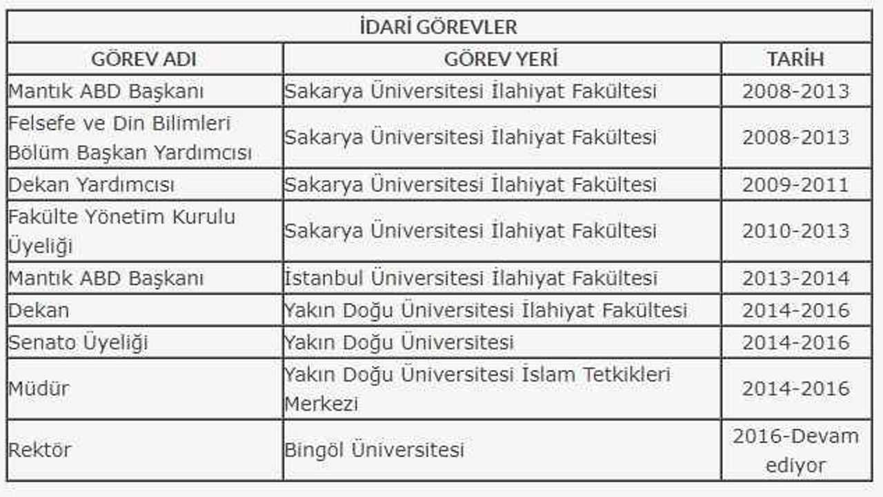 2013 Ağustos ayında İstanbul Üniversitesi İlahiyat Fakültesine geçiş yaptı. Burada Mantık Anabilim Dalı Başkanlığı görevini yürüttü. Üniversitesi adına değişik ülkelerde araştırmalar yürüttü. İstanbul’da bulunduğu süre içerisinde İstanbul Üniversitesinin yanında değişik üniversitelerde de alanı ile ilgili dersler verdi. Daha sonra Kıbrıs Yakın Doğu Üniversitesi İlahiyat Fakültesi Dekanlığı görevini üstlendi. Bu görevi ile birlikte kurucularından olduğu Yakın Doğu Üniversitesi İslam Tetkikleri Merkezi Müdürlüğü ve KKTC ÖSYM Koordinatörlüğü görevini de yürüttü.
