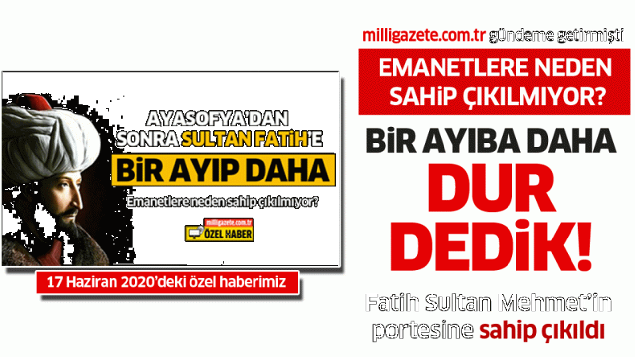 Milligazete.com.tr'nin  "Emanetlere neden sahip çıkılmıyor" diye gündeme getirdiği  “Ayasofya’dan sonra Fatih Sultan Mehmet’e bir ayıp daha…” haberinden sonra İBB harekete geçti.