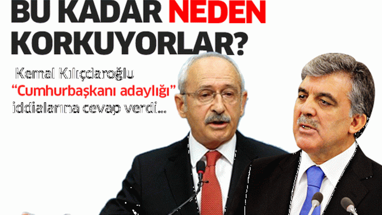 CHP Genel Başkanı Kemal Kılıçdaroğlu, Abdullah Gül’ün adaylığı tartışmalarıyla ilgili olarak, “Bu konuda bize gelen hiçbir şey yok. Olmayan bir konuda bir düşünce beyan etmemizin mantığı yok. Soru şu: Abdullah Gül’den neden bu kadar korkuyorlar?” dedi.